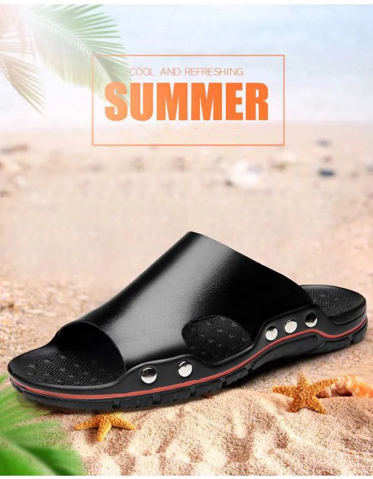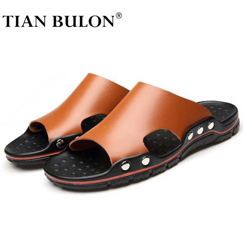 Сандалии мужские кожаные Нескользящие, дизайнерские удобные шлепанцы для дома и пляжа, римские сандалии, лето
