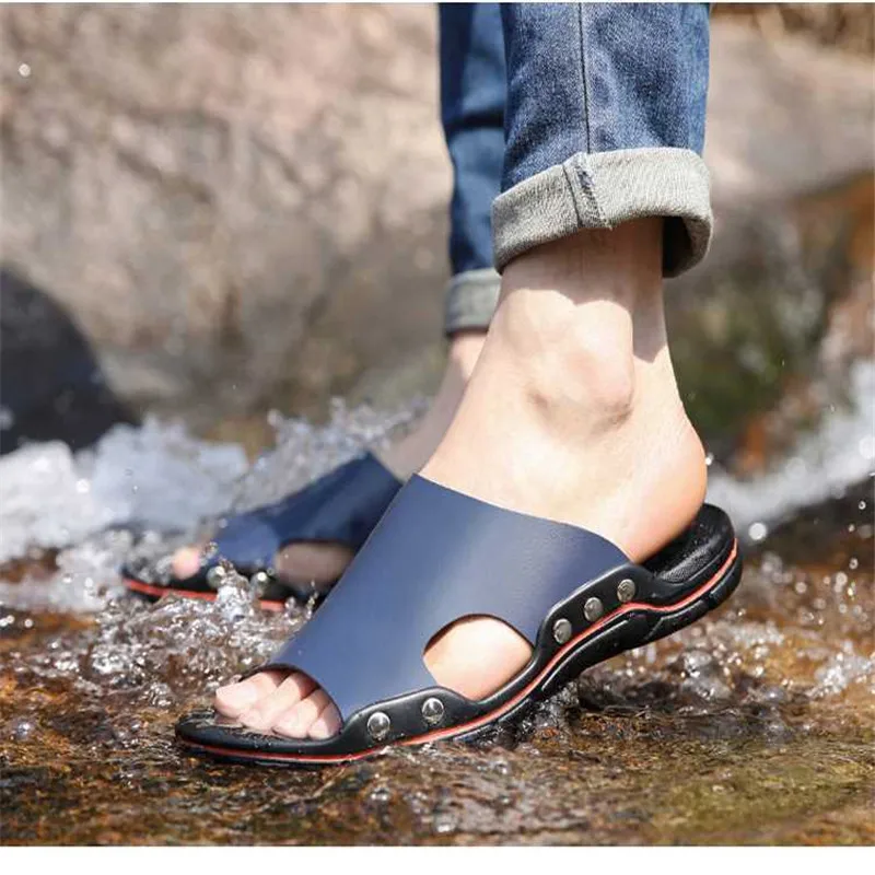 Сандалии мужские из натуральной кожи, дышащие, летняя повседневная ...