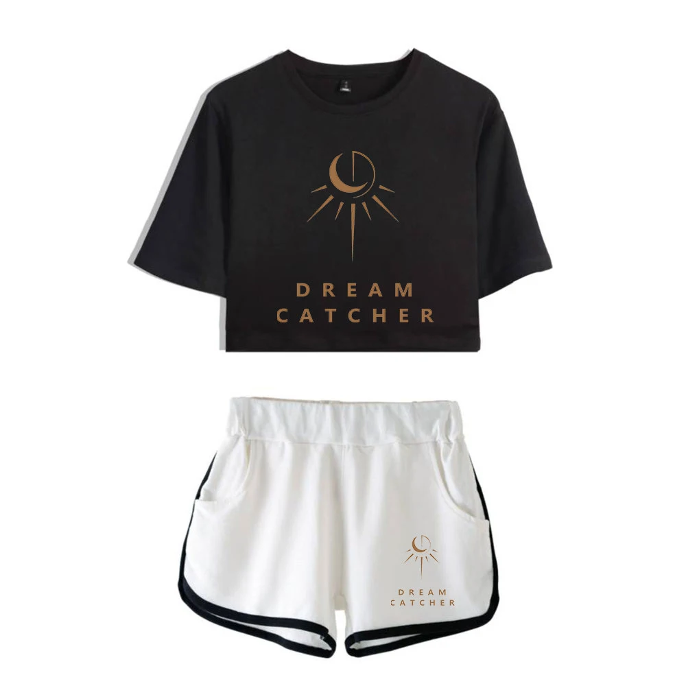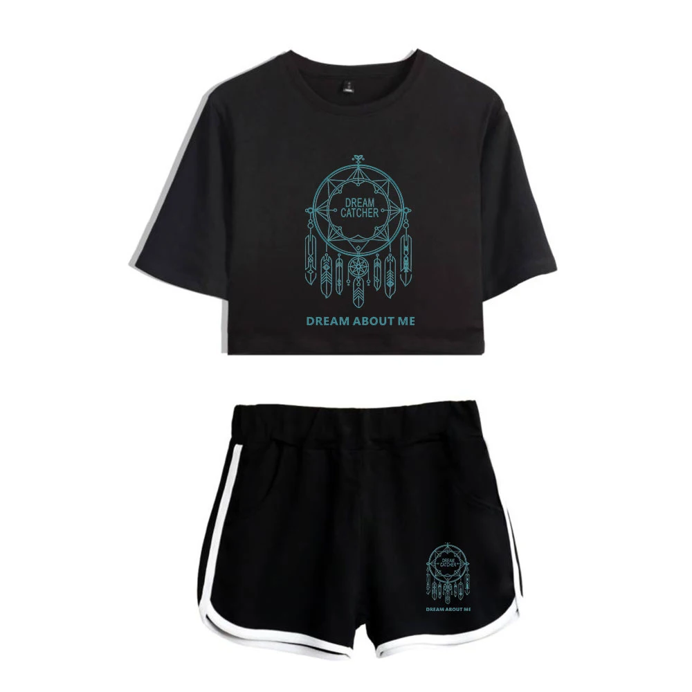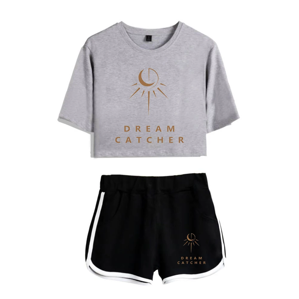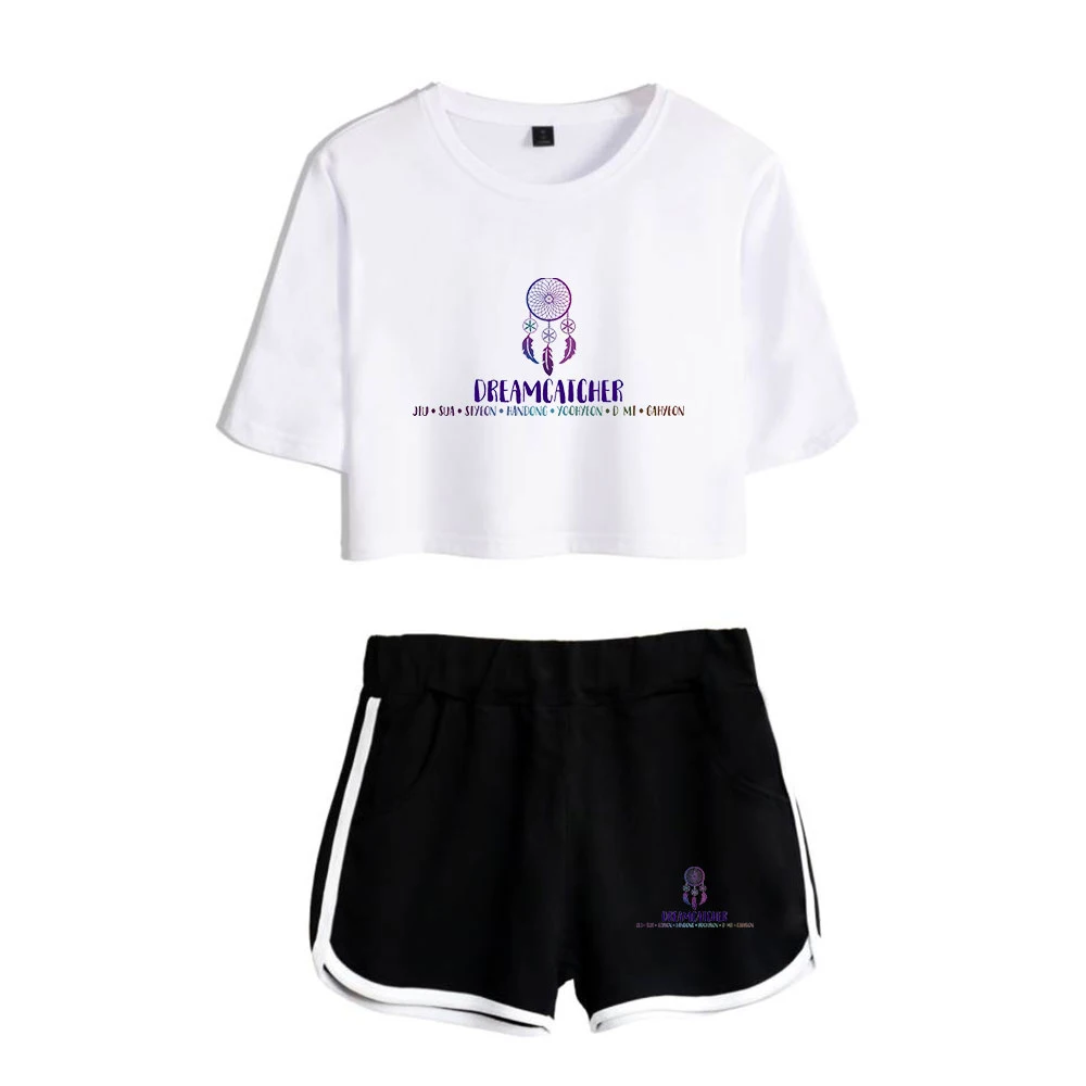 Женский комплект из 2-х предметов, короткий топ с коротким рукавом и шорты