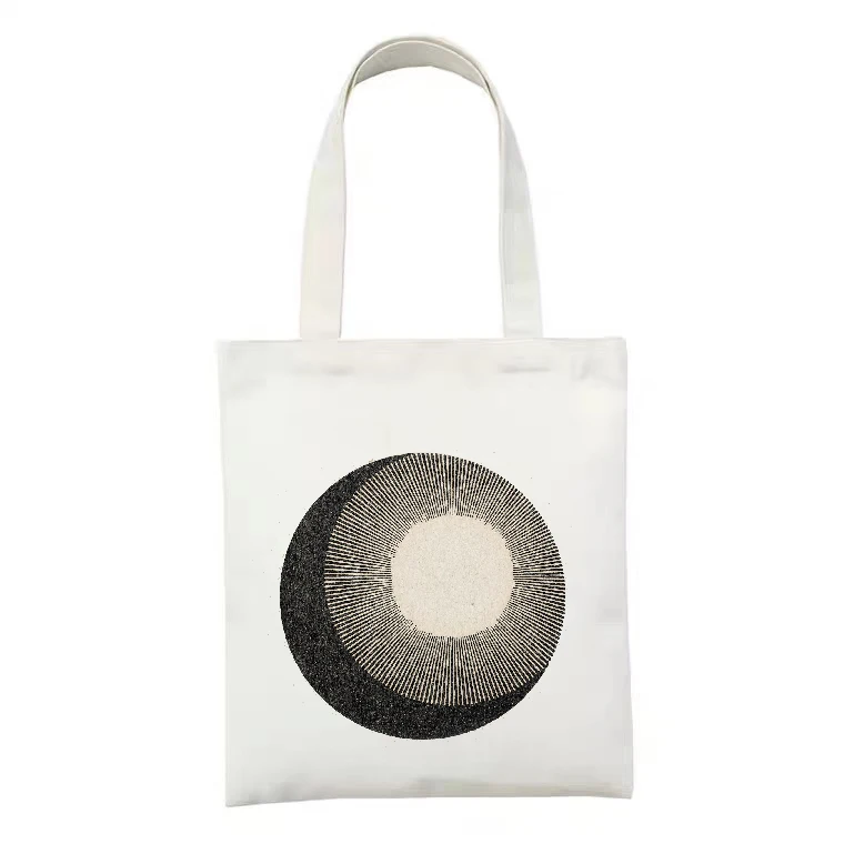 Вместительные холщовые сумки для покупок с принтом Солнца и Луны, 2021