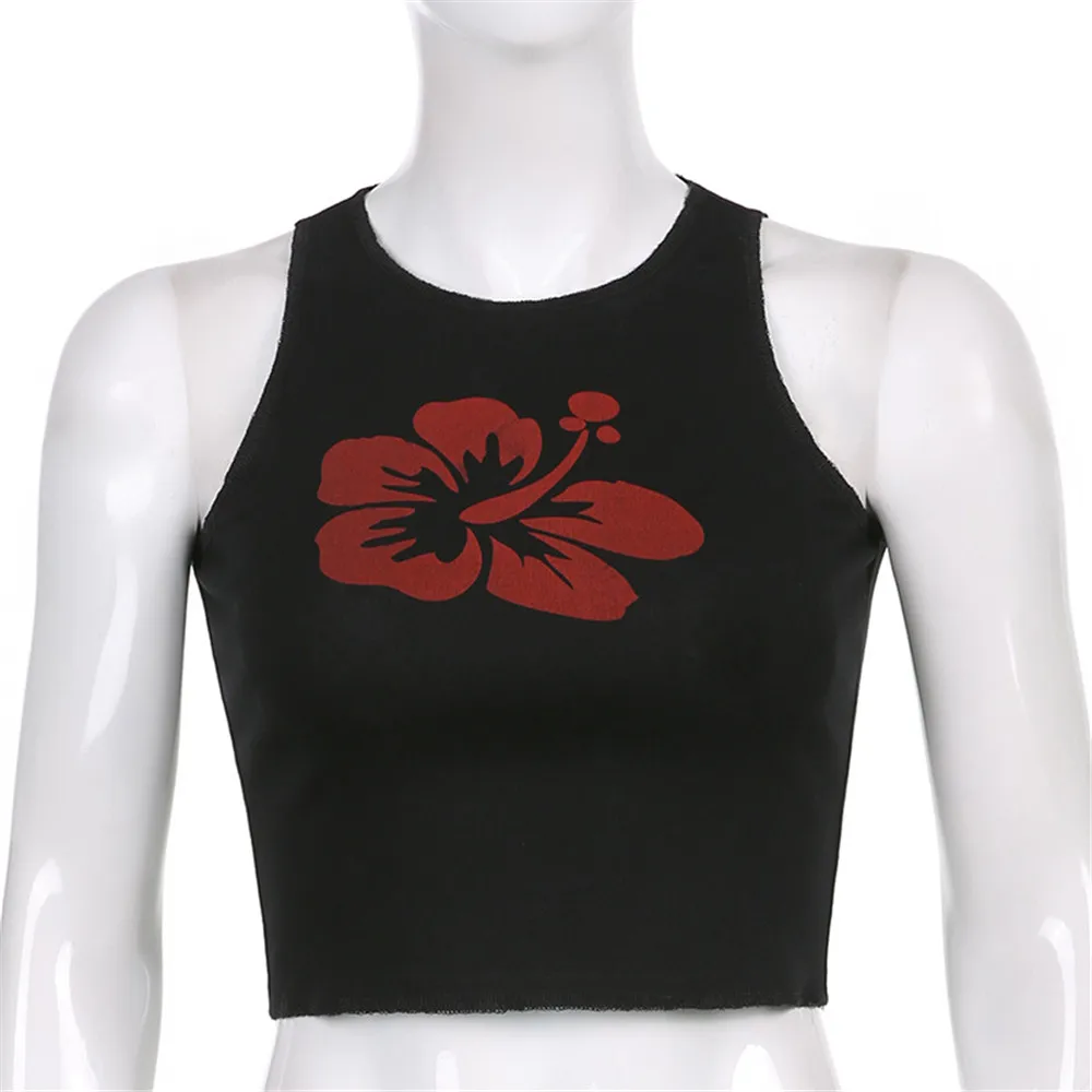 Женский укороченный топ без рукавов, винтажный топ с цветочным принтом и круглым вырезом в стиле Харадзюку, летняя одежда, y2k, 2021