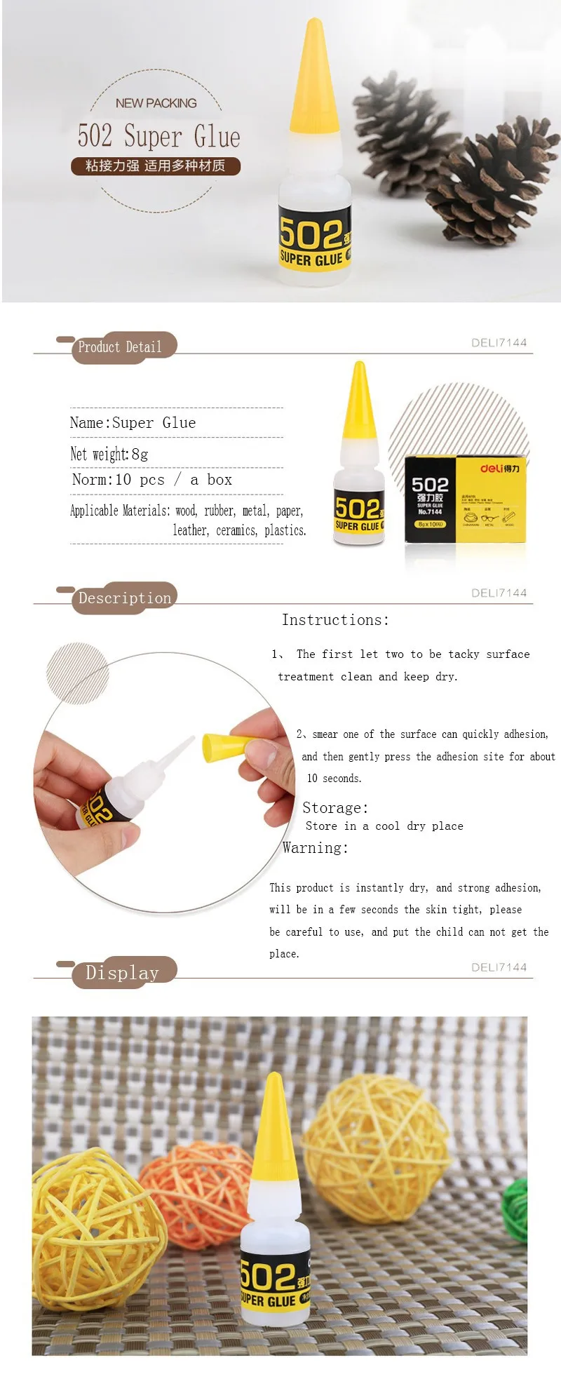 10 шт., Быстросохнущий цианоакрилатный клей для быстрой кожи, 8 г, супер клей 502