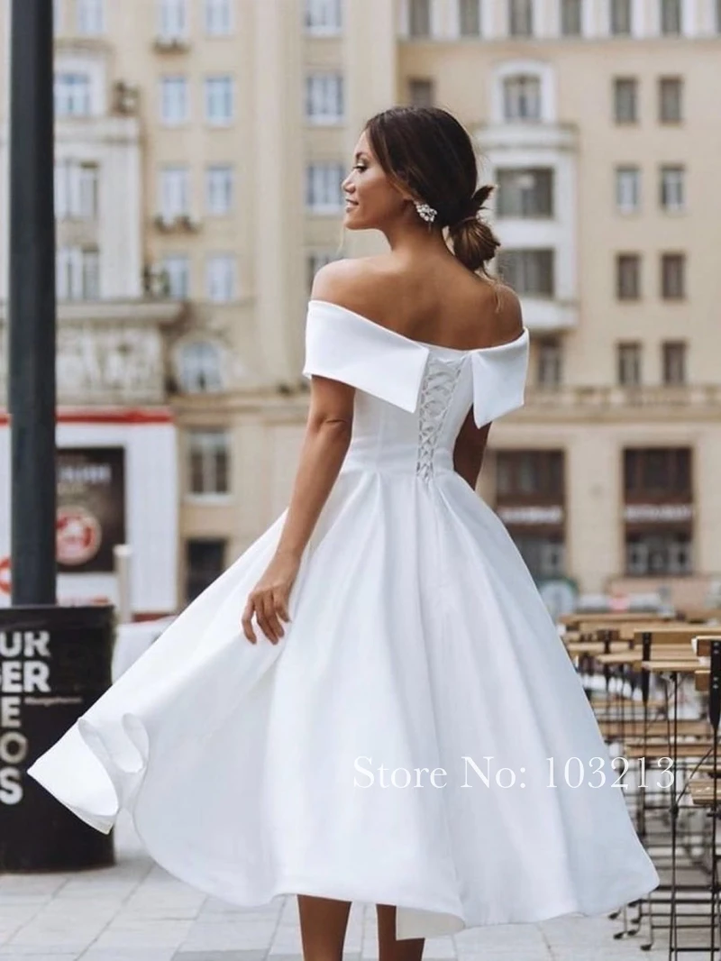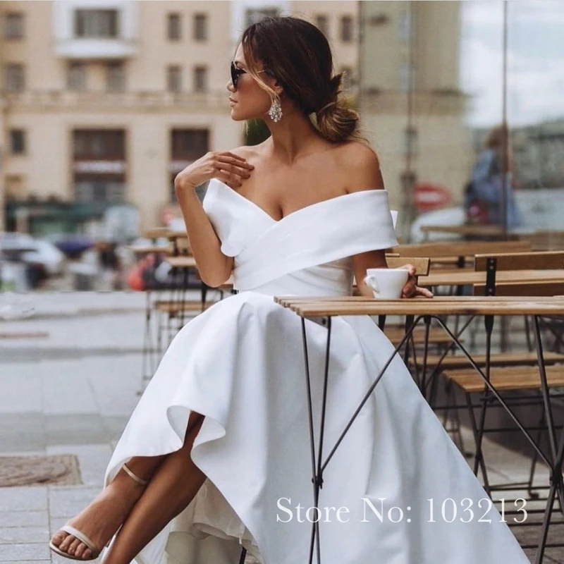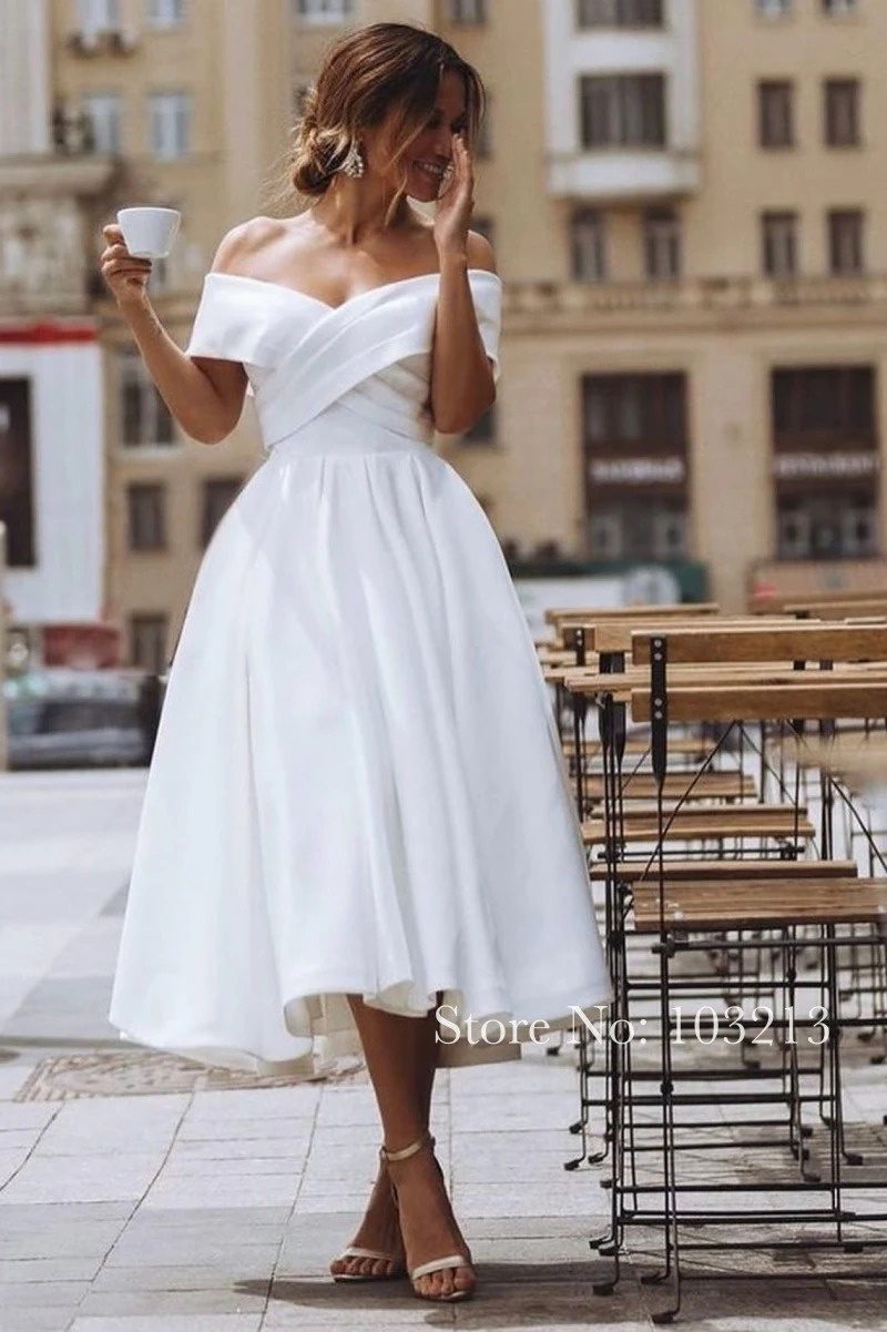 Новые модные белые короткие свадебные атласные платья с рукавом-крылышком 2021 летние пляжные платья для невесты
