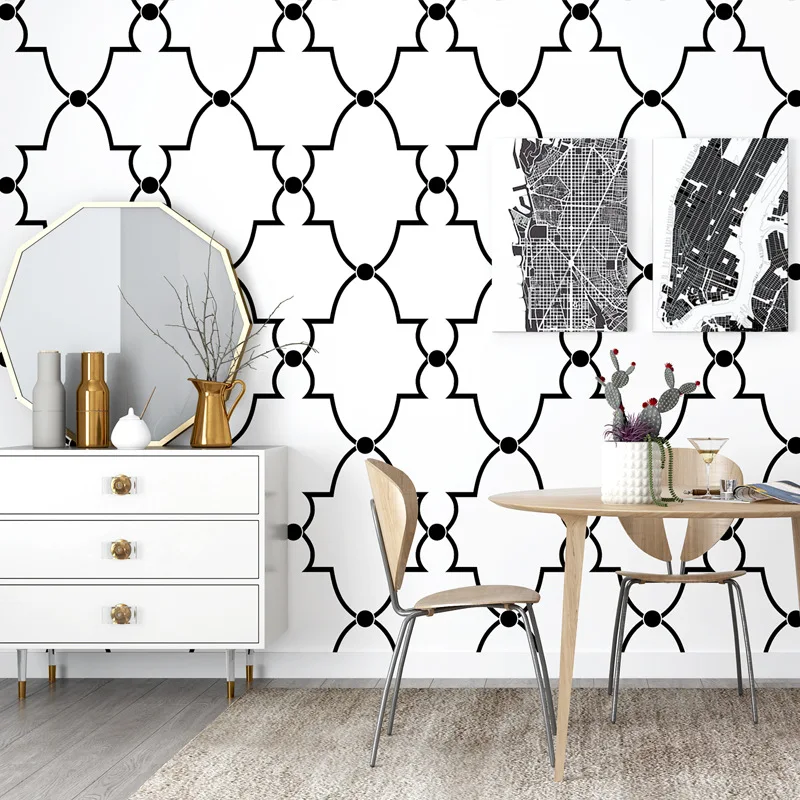 Скандинавские геометрические латтические 3D обои Черные виниловые б...