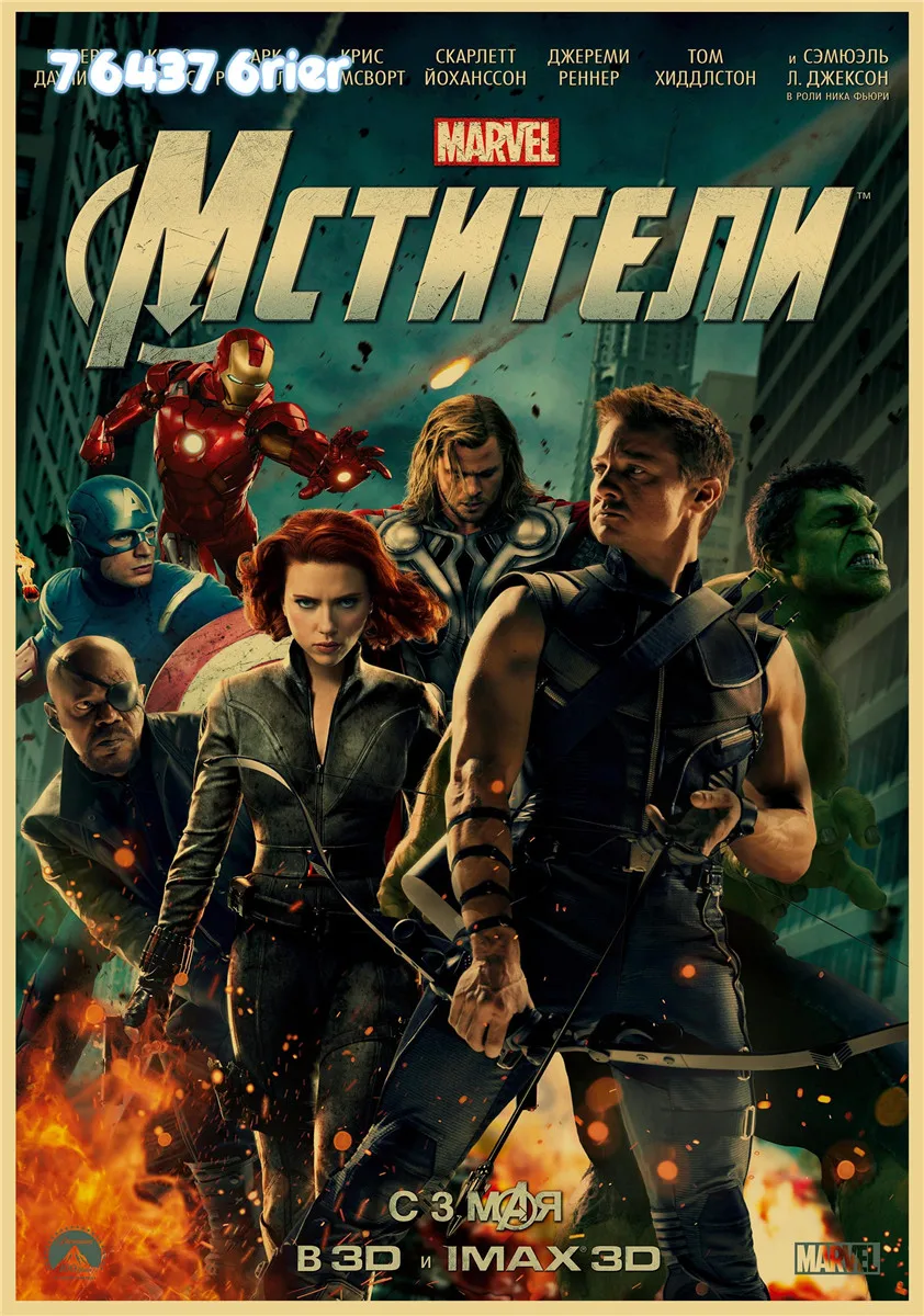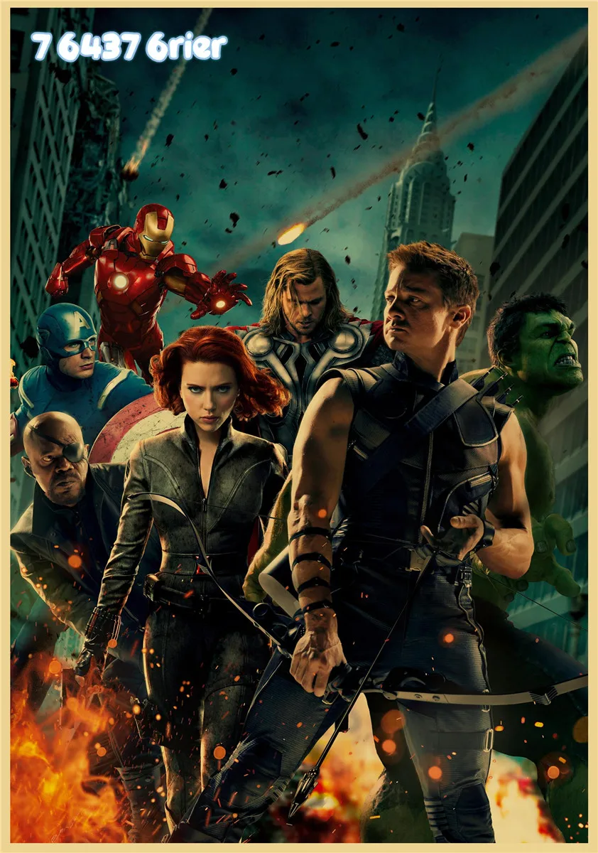 Серия супергероев Marvel, фильмы Мстители, ретро, постер из крафт-б...