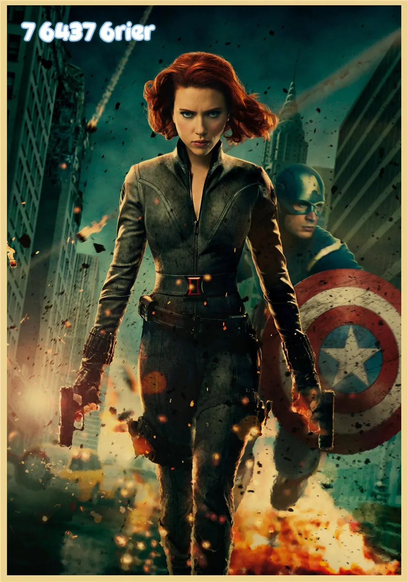 Постер из крафт-бумаги в стиле ретро с супергероями Marvel, Железный человек, Капитан Америка, Черная Вдова, семья, декоративная картина, наклейка на стену