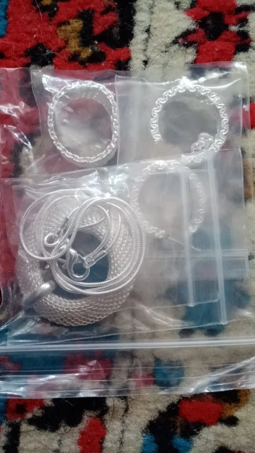 Комплект получила в сохранности. Очень интересный дизайн, мне все по оформлению нравится, сколько прослужит, конечно, будет зависить оть от меня, и покажет время. Единственный недостаток, что кольца из комплекта одного размера, хотя в характеристиках указан размерный ряд.за это снимаю 1 звезду.кольцо не по заданному размеру.