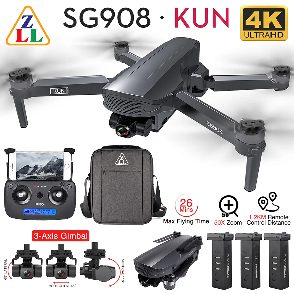 ZLL SG908 GPS FPV Дрон с 4K HD Камера 3-осевому гидростабилизатору 5G Wi-Fi с бесщеточным двигателем складной Квадрокоптер с дистанционным управлением 1,2 км VS SG906 MAX