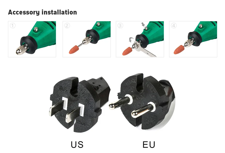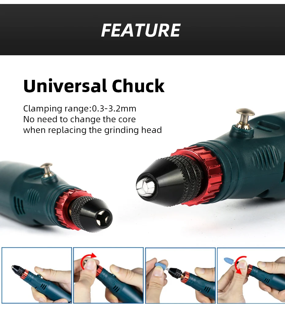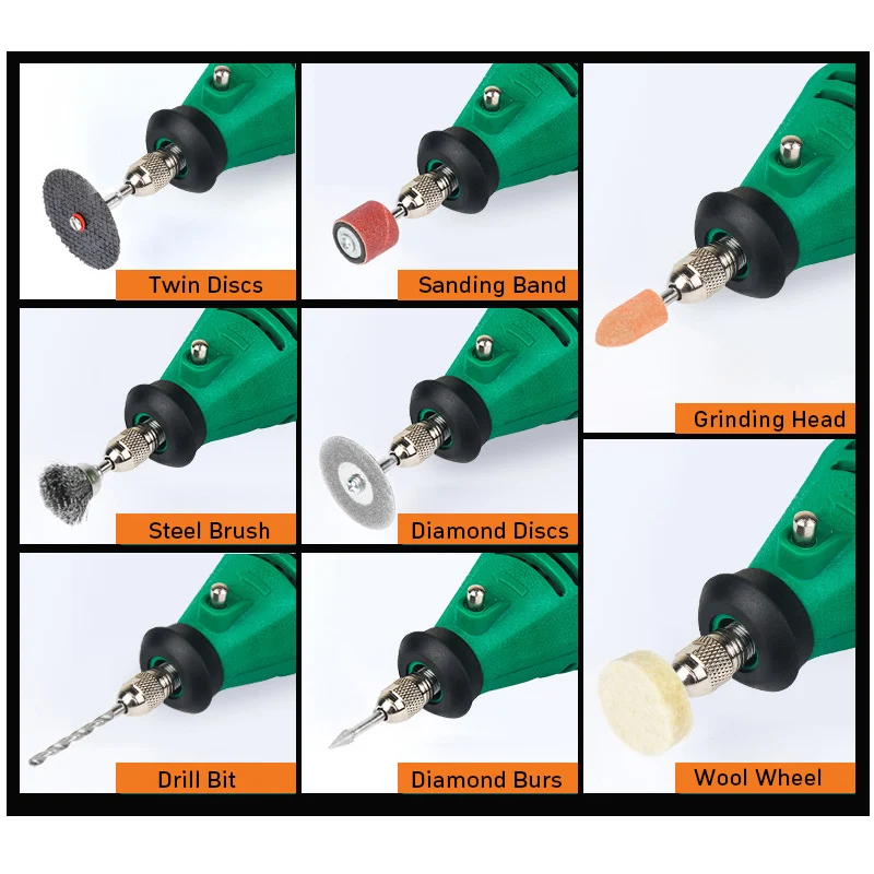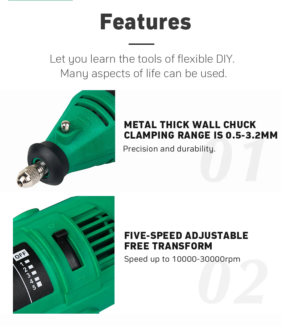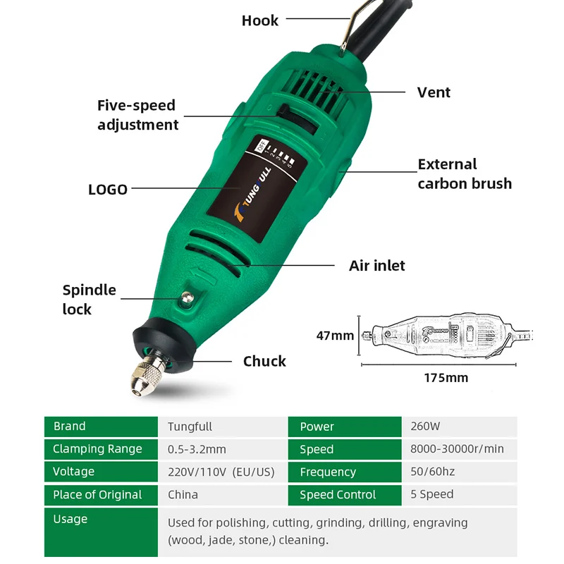 Цвет: зеленыйМесто оригинала: КитайНапряжение: 220 В, 110V.de ошибка мы посылаем 220 В, если вам нужно 110 В, пожалуйста, отметьте.Максимальная мощность: 260 ВтМашина для сбора Размеры: 0,5-3,2 ммПрименение: ewelry,home и wood makingФункция: для дерева, металла, керамики, пластика, полировки, шлифовки, резьбы, формирования и шлифования.