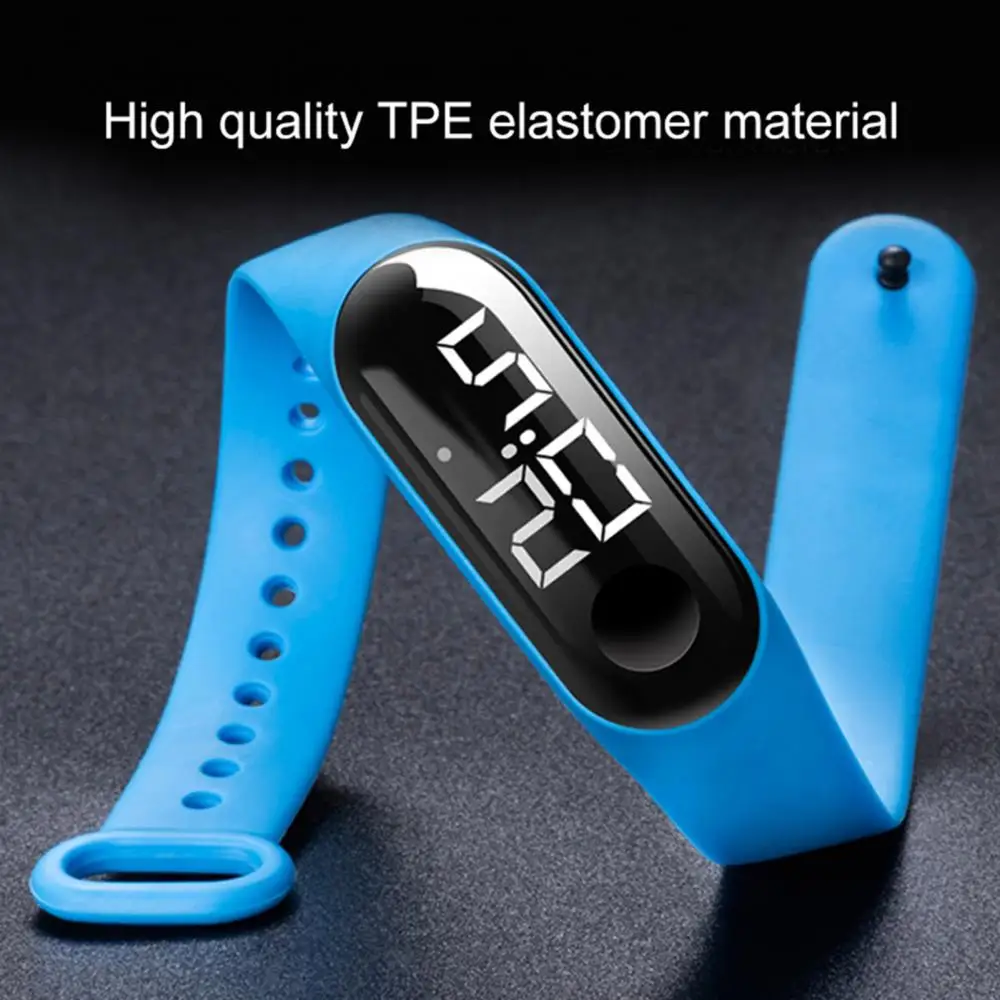 Детские однотонные наручные часы M3 с регулируемым ремешком, светодиодные цифровые электронные спортивные наручные часы для мальчиков и девочек