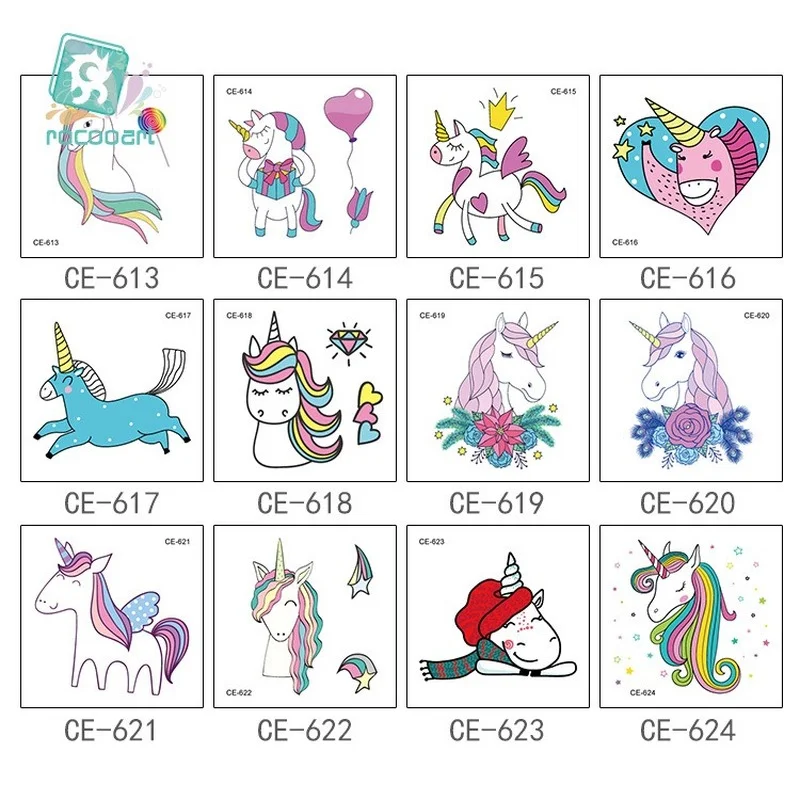 Rocooart Горячая продажа мини Единорог Лошадь тату дизайн для мальч...