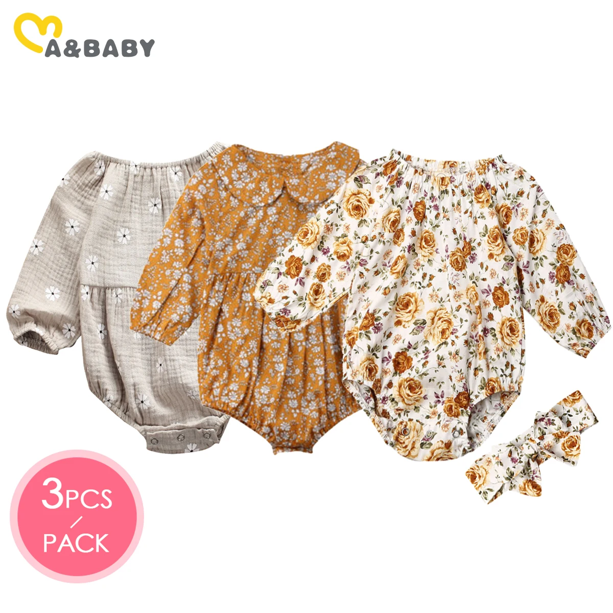 Ma ребенка в возрасте 3 шт.упак., для новорожденных, для маленьких девочек Комбинезон с цветочным рисунком в винтажном стиле комбинезон с длинным рукавом одежды для детей на осень и весну, 3 предмета в комплекте, от 0 до 24 месяцев DD43