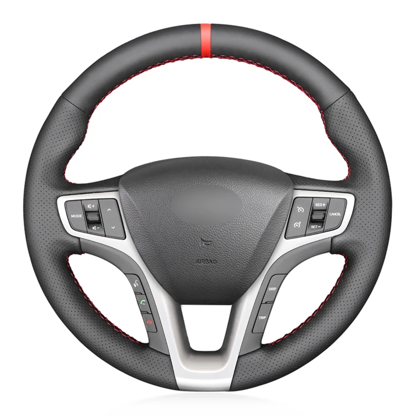 Черная искусственная кожа, красный маркер, сшитый вручную чехол рулевого колеса автомобиля для Hyundai I40 2011-2019