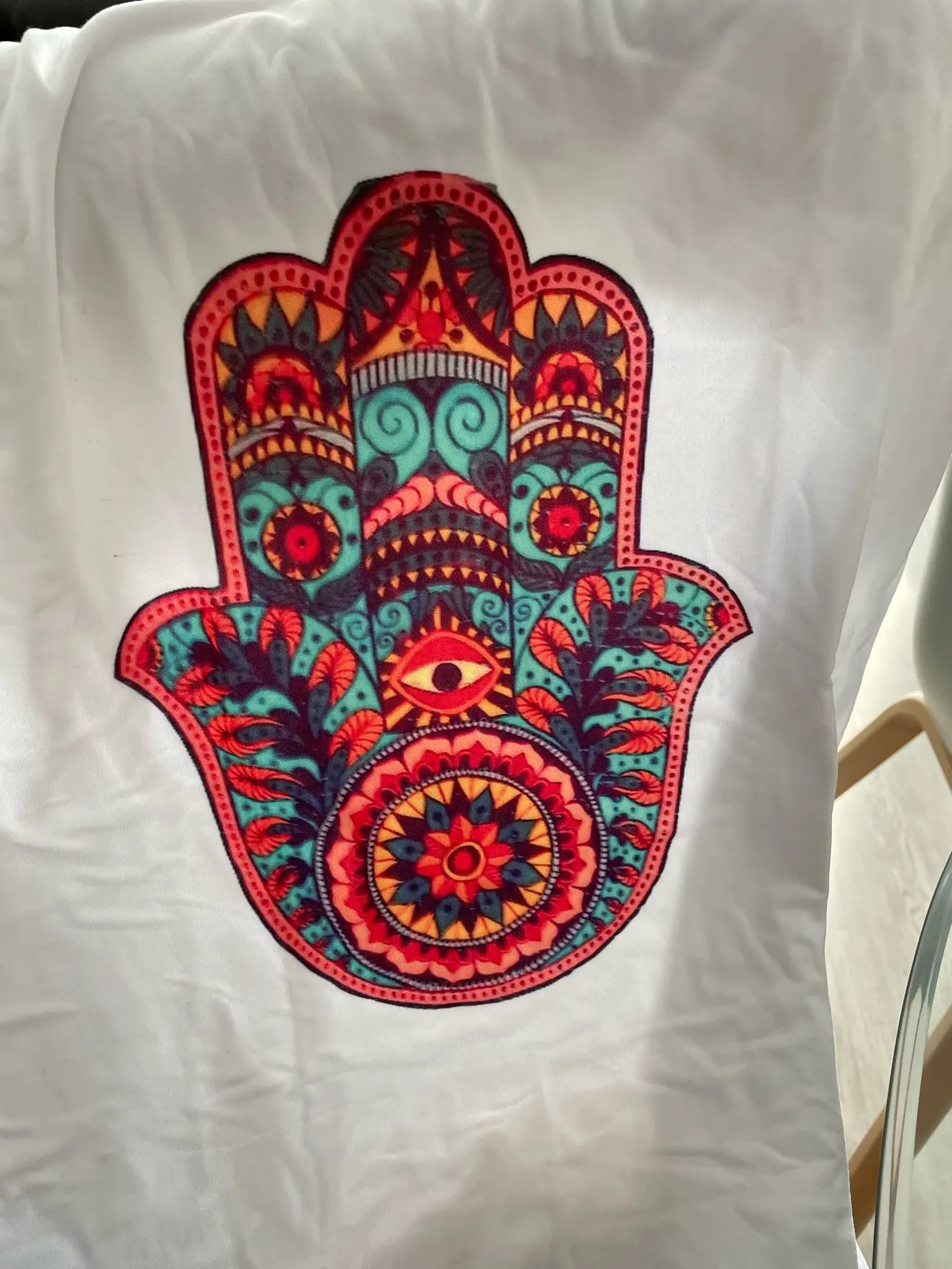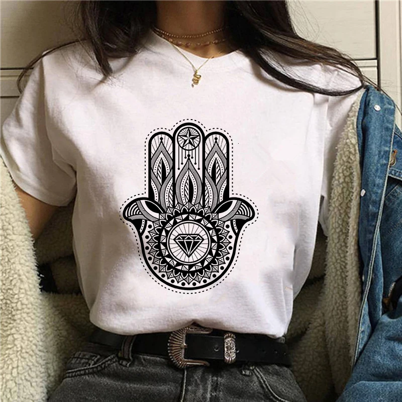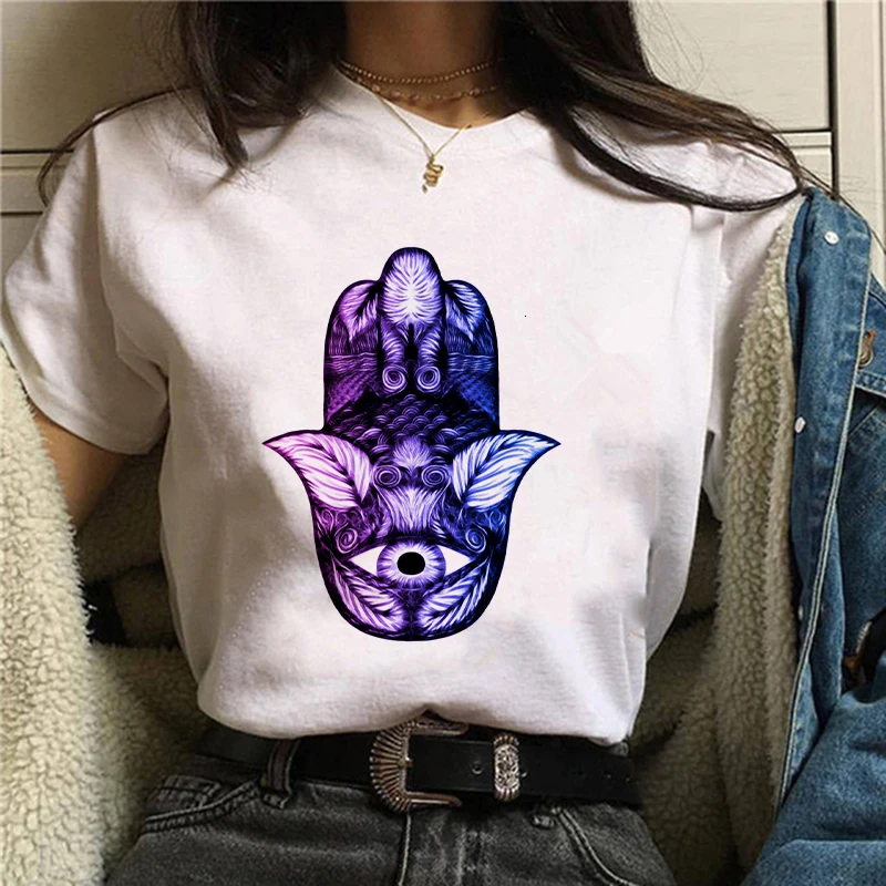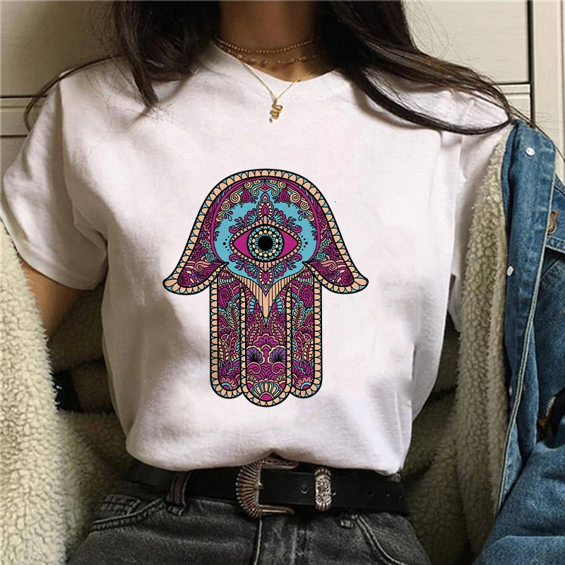 Женская Винтажная Футболка с принтом рука и глаза и круглым вырезом