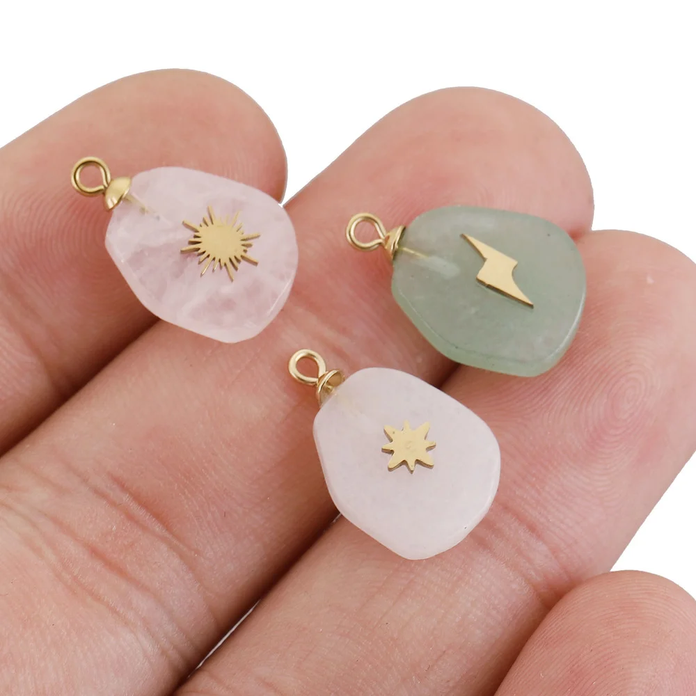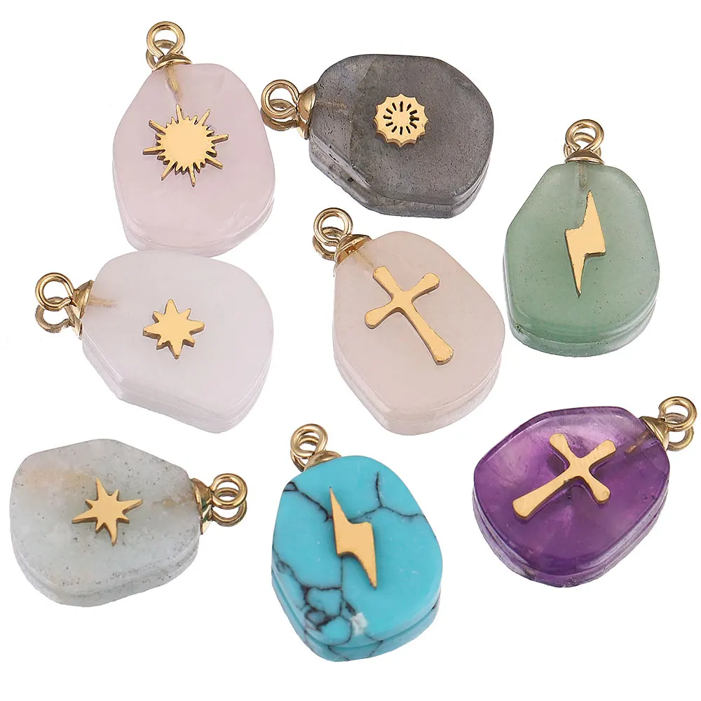5 предметов в лоте; Звезда молния из натурального камня из нержавеющей стали золотые дизайнерские подвески DIY браслет серьги ожерелье, нержавеющая сталь, для изготовления ювелирных изделий