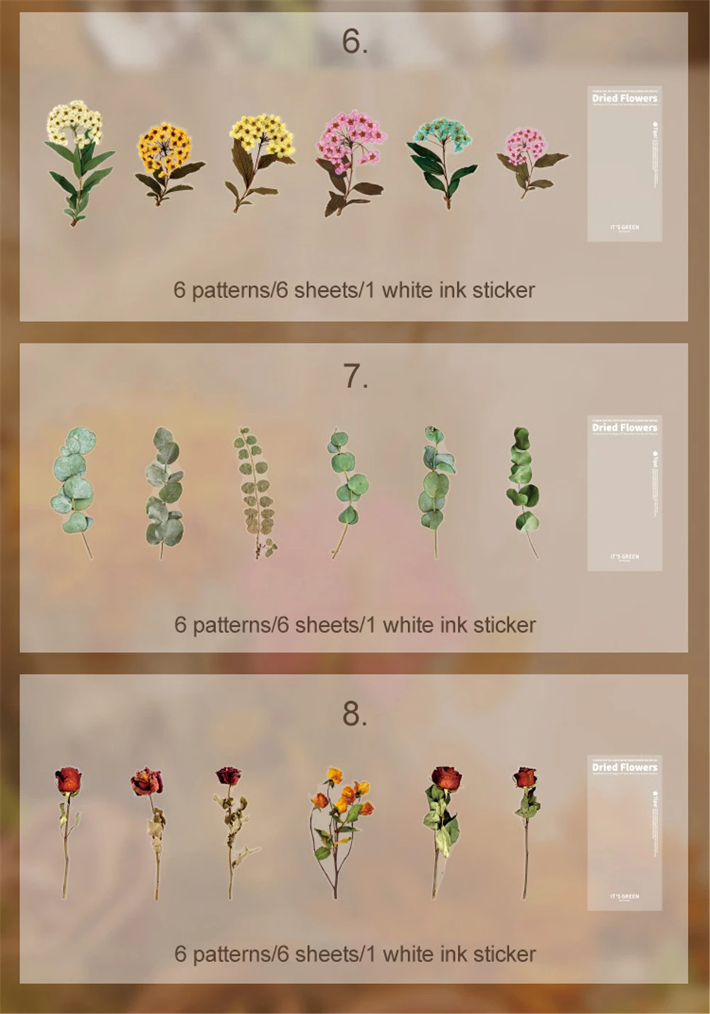 6 Лист засушенные цветы Стикеры s комплект PET Материал Jumbo Разме...