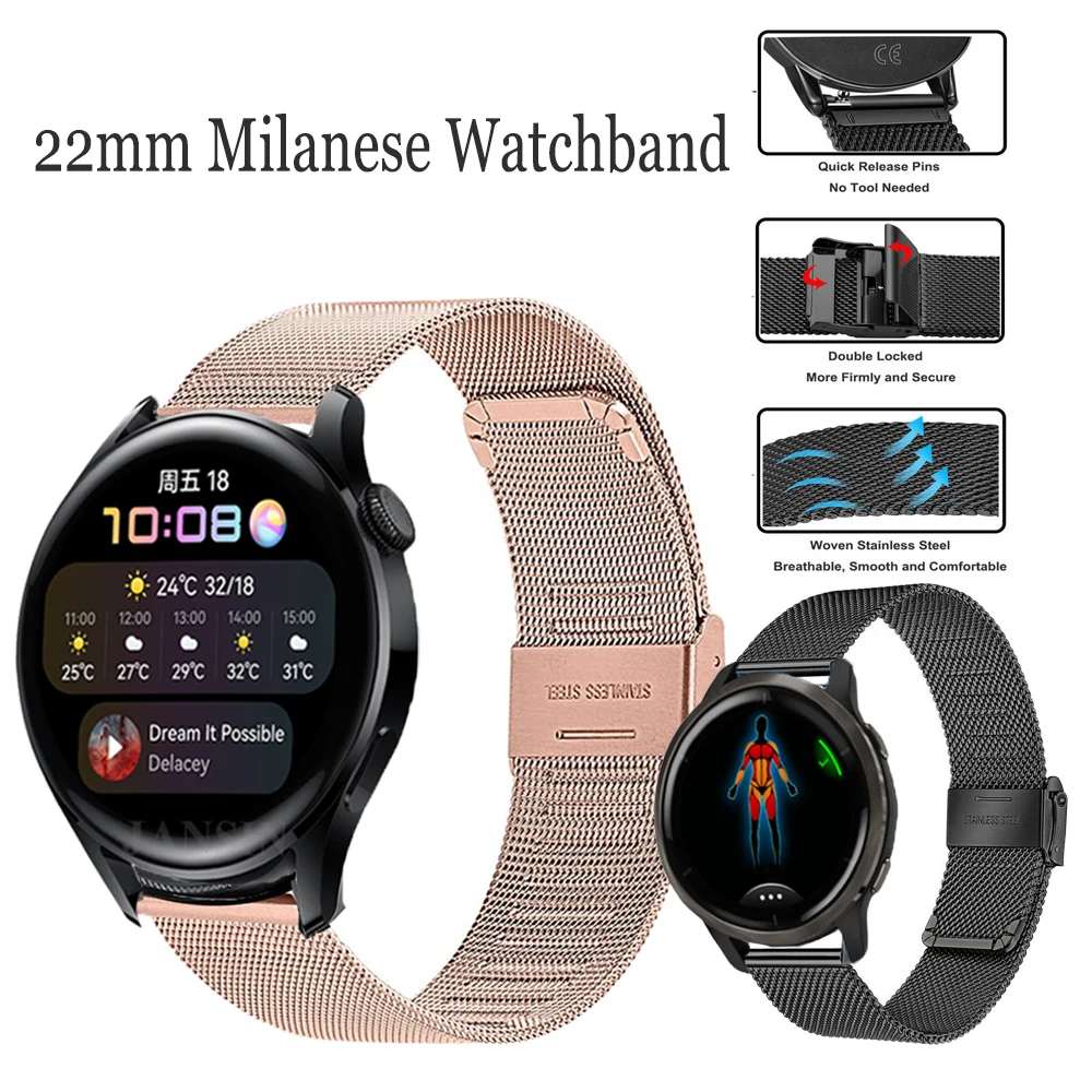 Ремешок Миланская петля 22 мм для наручных часов Huawei Watch 3 GT2 46 мм GT2 Pro GT 2e, браслет для Garmin CAME 2 Vivoactive 4