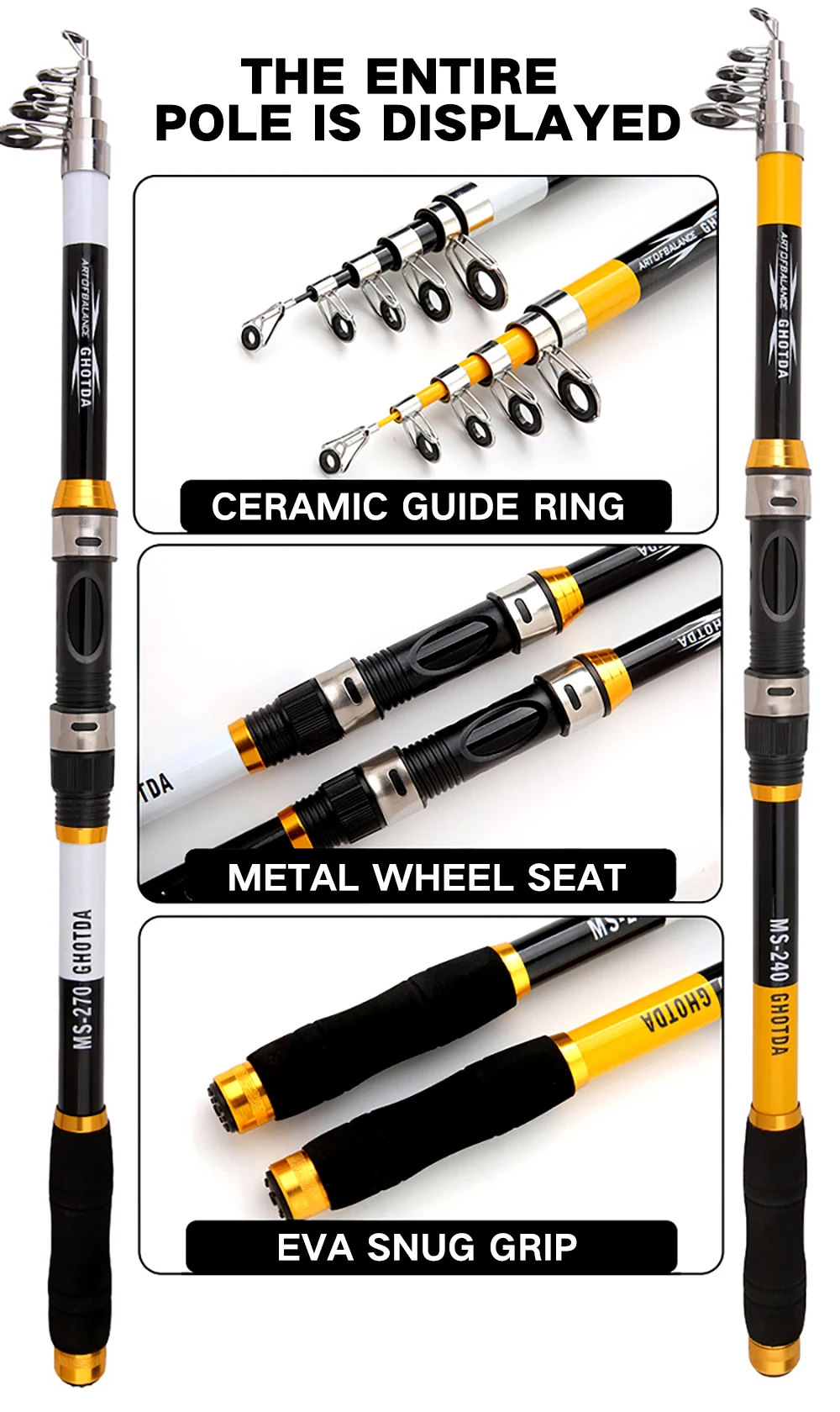 Портативная телескопическая удочка GHOTDA для ловли карпа, Удочка и...