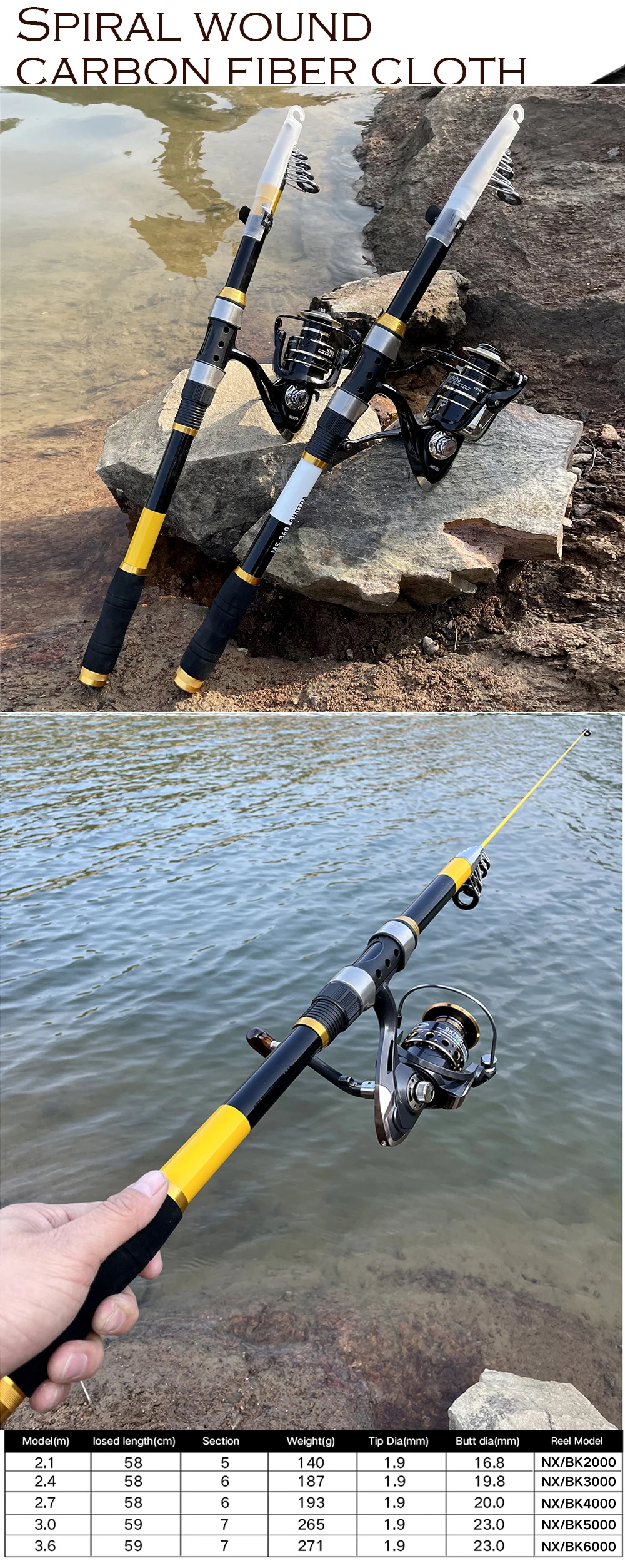 2,1-3,6 м стержень катушки углерода телескопическая спиннинг рыболо...
