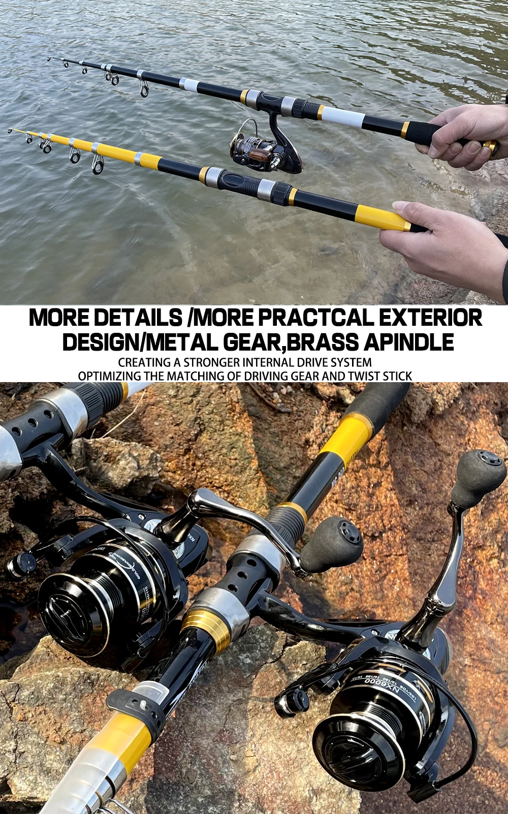 Телескопическая удочка и Катушка для спиннинга, комплект из жестког...