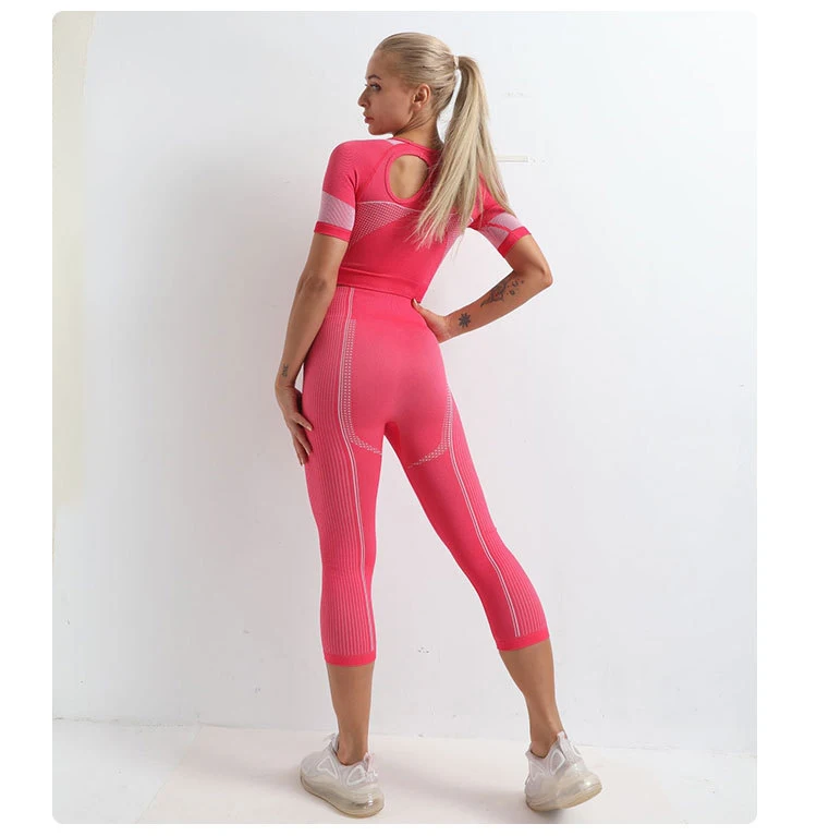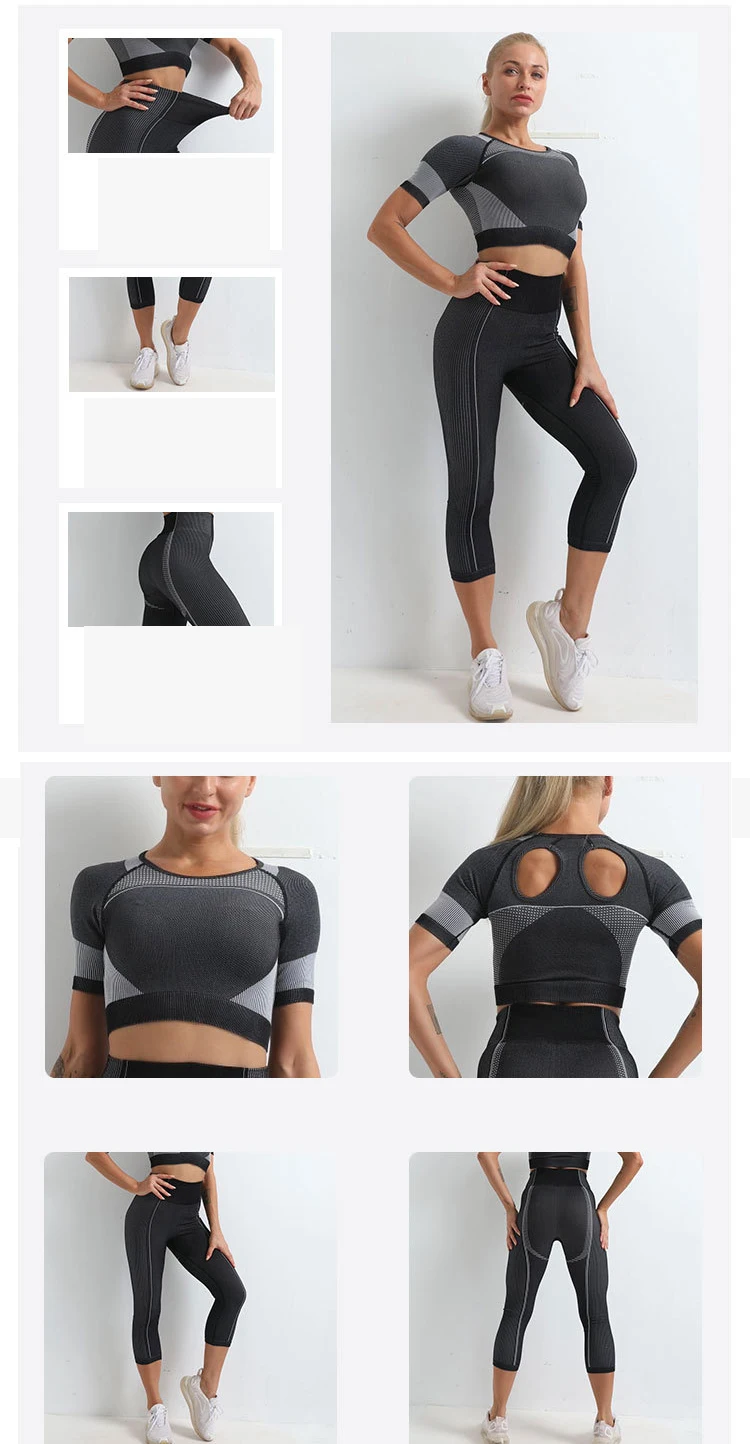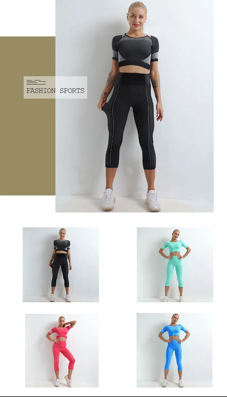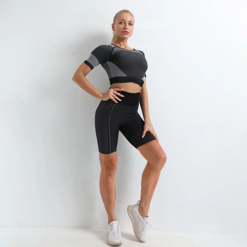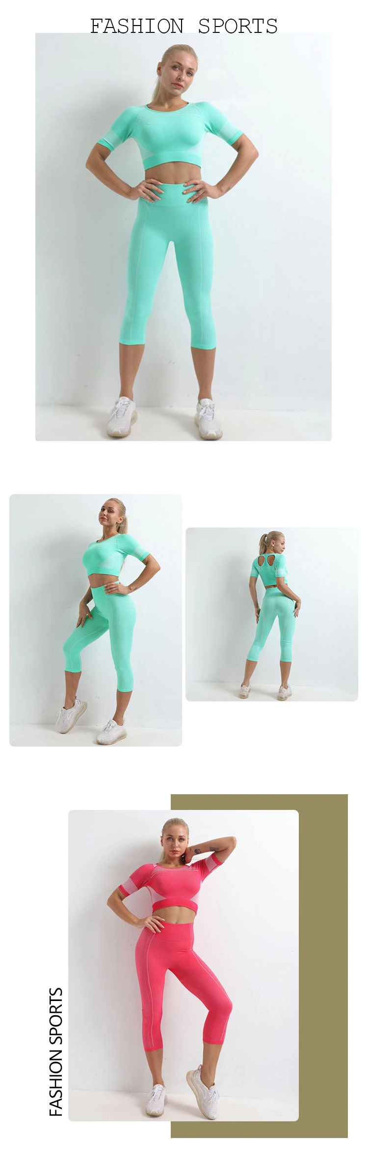 Бесшовный Женский комплект для йоги, спортивная одежда, шорты для фитнеса, спортивный бюстгальтер, футболка, короткие леггинсы, штаны для йоги, одежда для тренажерного зала, спортивный комплект