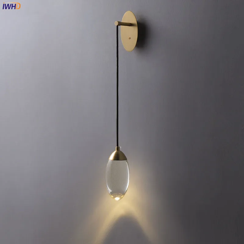 IWHD постмодерн Роскошные хрустальные светодиодный настенные светильники спальня лестница рядом с лампой медный Скандинавский современный светильник для дома