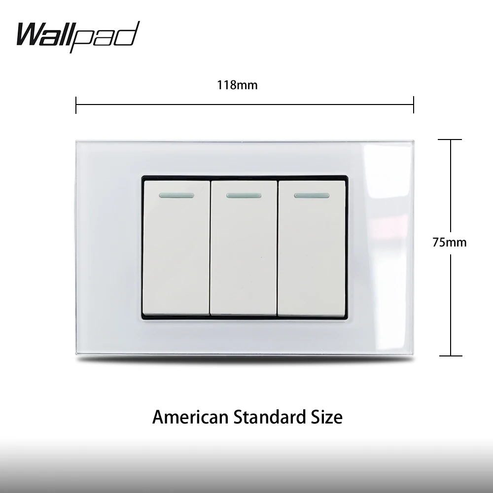 US 3 Gang 1 Way 2 Way On Off Light Switch Wallpad L3 белая стеклянная настенная панель 118*75 мм AU IT IL кнопочный перекидной переключатель
