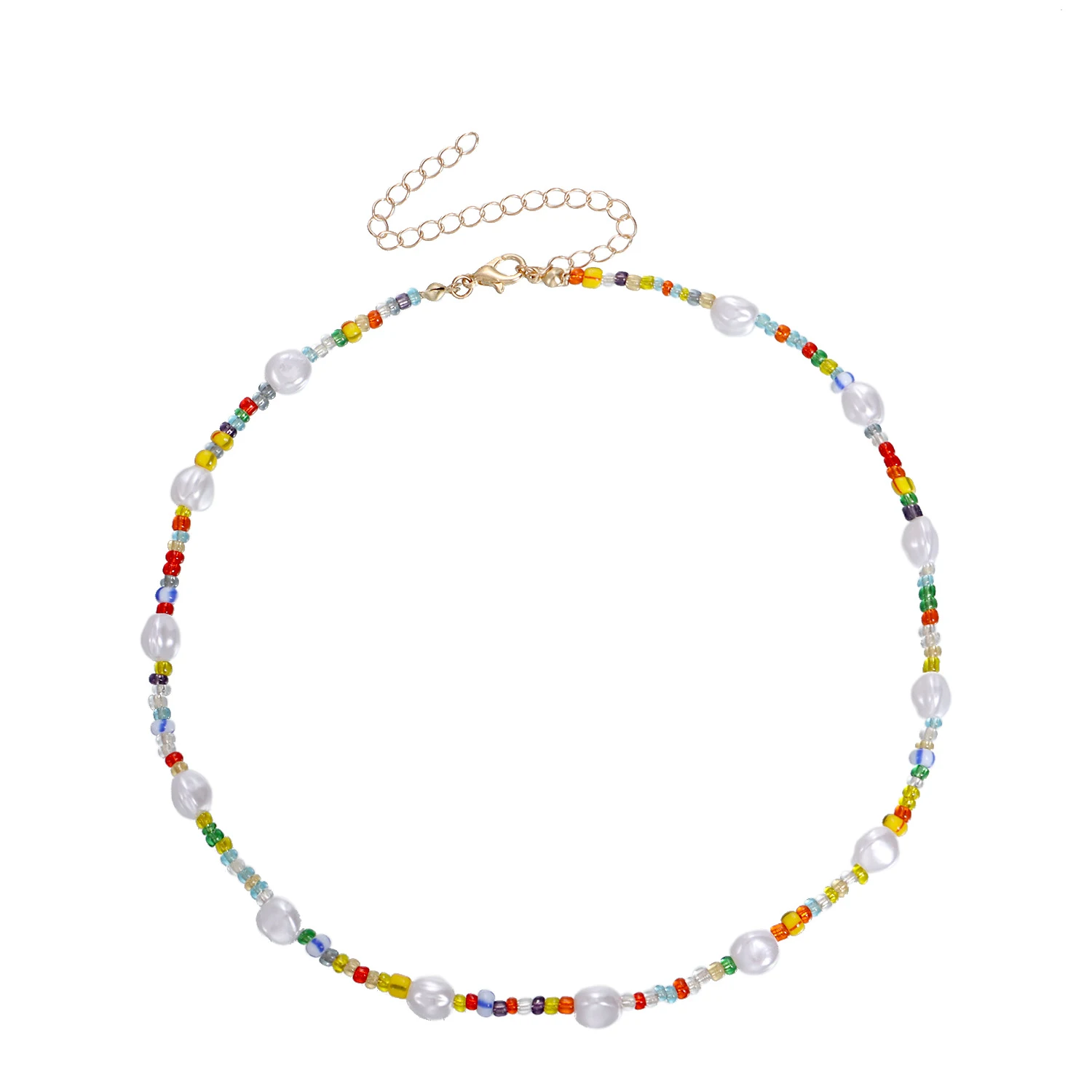 В богемном стиле с искусственным жемчугом камень ожерелье женские туфли-лодочки ручной работы в стиле рис бусы колье для женщин вечерние пляжные ювелирные подарки