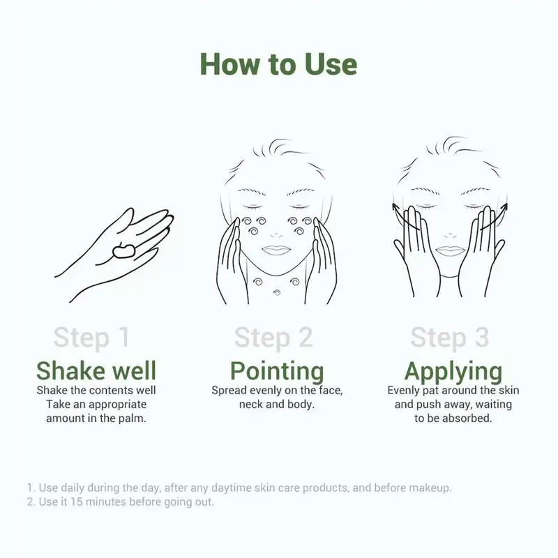 Характеристика:Обратите внимание: другие аксессуары не включены.100% новое качествоСпецификация: 40 млРазмер: 4,4*2,7*10,5 смЦвет: зеленый, фиолетовыйИнгредиенты продукта: октенол, сквалан, пропиленгликольПодходящие типы кожи: подходят для всех типов кожиХарактеристика:1. Светильник с кремовой текстурой, хорошая электронная Таблица-легко наносится, свежий и не липкий;2. Использовать перед макияжем, консилер для веснушек, увлажнения3. Естественная яркость, яркость тона кожи, Естественное отсутствие ложного белого цвета4. Водонепроницаемая текстура, легкая и не липкая, с SPF50 +/PA + + +Комментарий:1. Погрешность измерения вручную составляет 2-5g. Пожалуйста, не обращайте внимания на вашу замену.2. Из-за различий между различными мониторами изображение может не отражать фактический цвет изделия. Большое спасибо!3. SKU цвет продуктаПосылка включает в себя:1*40 мл солнцезащитный крем