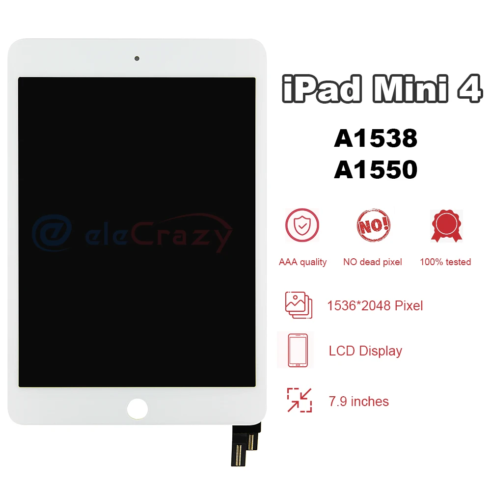 ЖК-дисплей класса AAA для iPad mini 4 Mini4, ЖК-дисплей с сенсорным экраном, дигитайзер, панель A1538 A1550, замена в сборе, 100% Протестировано