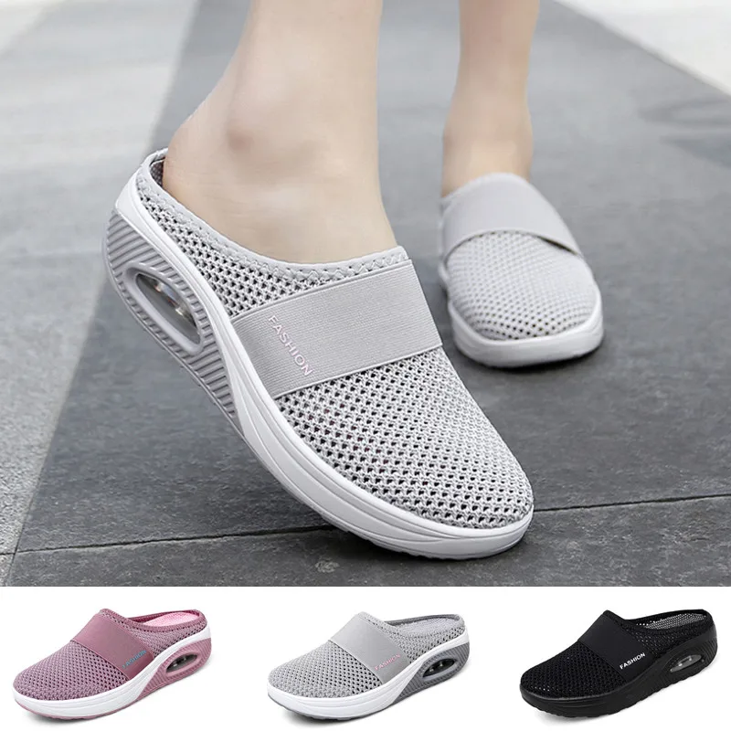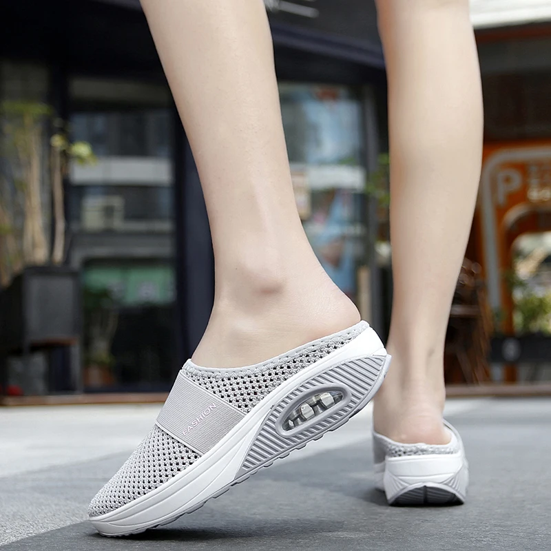 Кроссовки женские прогулочные с воздушной подушкой, удобная дышащая повседневная обувь для мам, сандалии на платформе, без шнуровки, увеличивающие рост