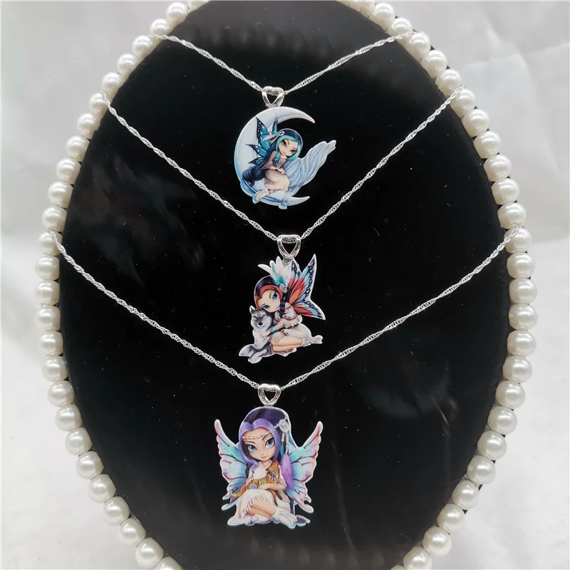 Полимерное крыло Луна кошка цветок фея кулон ожерелья для женщин ожерелья с бабочками животных аниме мультфильм женское ожерелье новые ювелирные изделия
