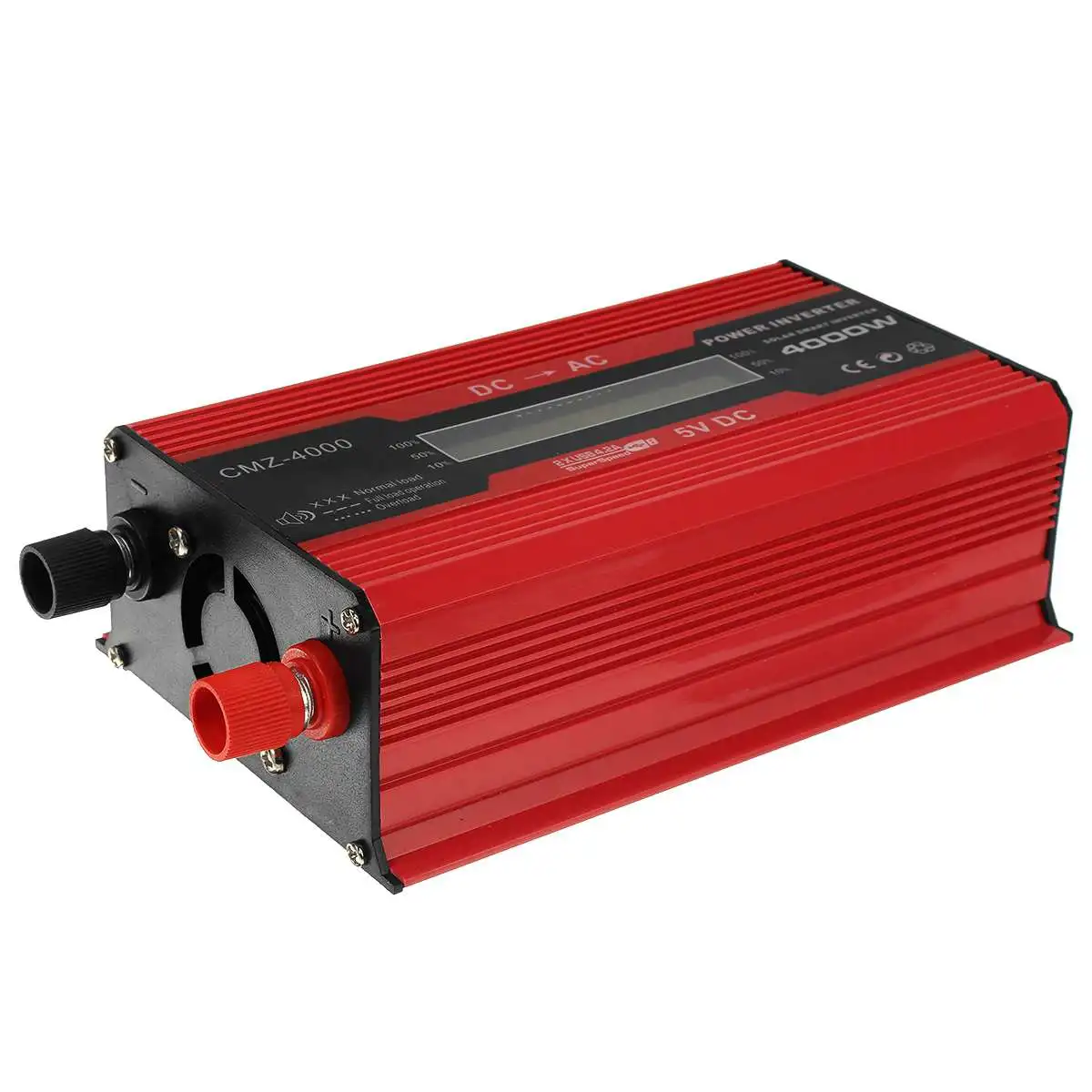 ИнверторНазвание продукта: инвертор от DC12V до AC110V/AC220VФорма выходного сигнала: модифицированная Синусоидальная волнаВыходная мощность: 4000 ВтВходное напряжение постоянного тока: 12 В (Примечание: положительные и отрицательные полюсы не могут быть изменены и будут повреждены)Выходное напряжение переменного тока: 220 В 50 ГцХарактеристики выходного гнезда переменного тока: Универсальная РозеткаОповещение о низком напряжении: 10V постоянного тока ± 0,5 VЗащита от низкого напряжения: 9 В переменного тока ± 0,5 VЗащита от перенапряжения: 15,5 VФункция защиты: перегрузка, короткое замыкание, перегрев, обратная полярность, пониженное напряжение/перенапряжение