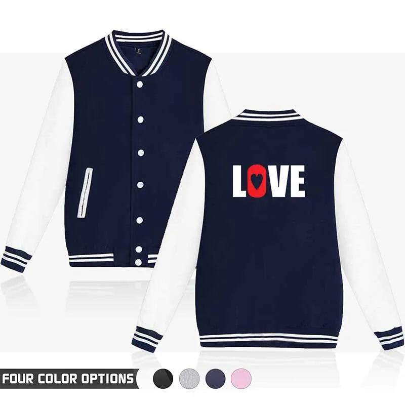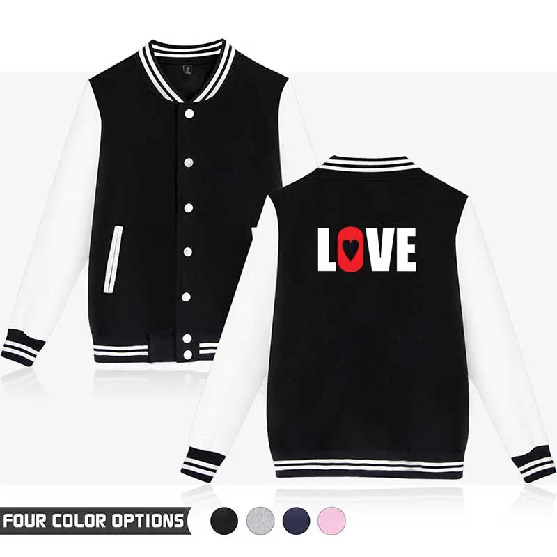 Новая модная бейсбольная куртка с принтом Love, пальто, топы, спортивные мужские и женские толстовки в стиле хип-хоп с длинным рукавом в стиле Харадзюку для пар, свитшоты, одежда
