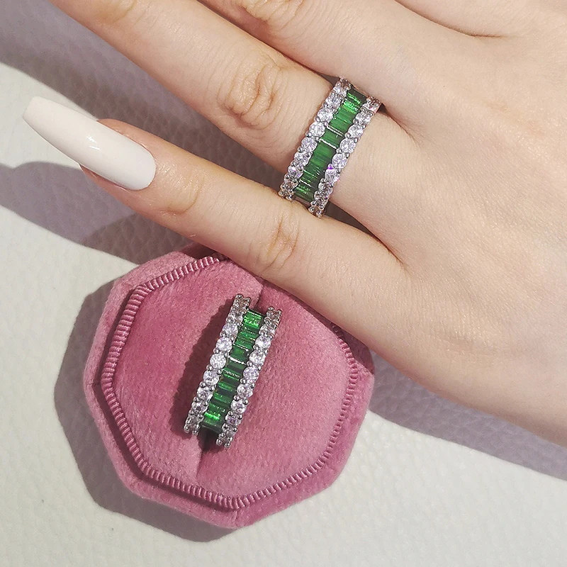 Женское кольцо из серебра 2022 пробы, с розовымзеленым багеттом