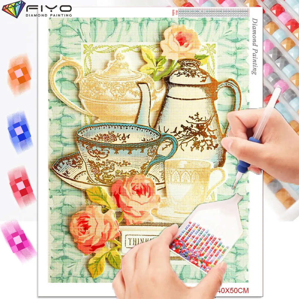 Huacan 5d DIY Алмазная вышивка кофейная чашка, алмазная живопись по...