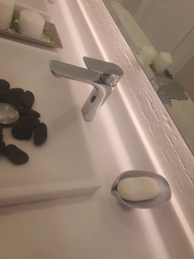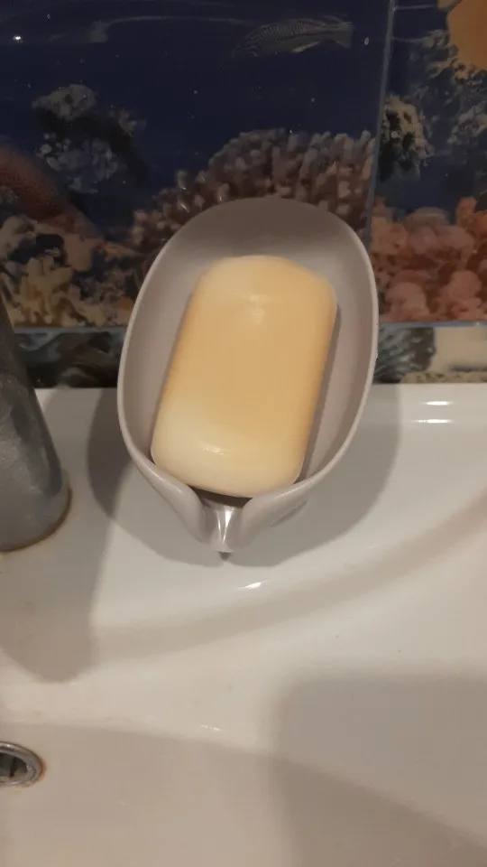 Мыльница удобная, можно поставить на любую раковину. Но, есть один маленький нюанс. Липучка не держит тяжёлое мыло и опрокидывается, поэтому приклеили на силикон, можно на влагостойкий клей. И, после этого прекрасная подставка, выглядит очень эстетично.