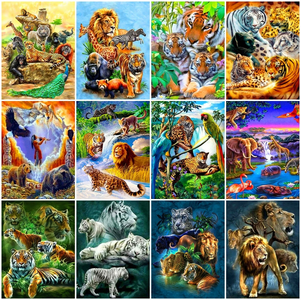 Алмазная живопись AZQSD тигр, лев, леопард, вышивка крестиком, алмазная вышивка, животное, мозаика ручной работы, украшение для дома
