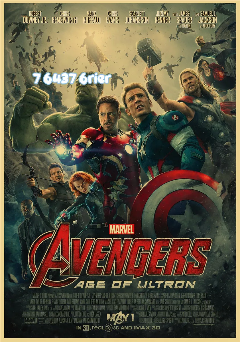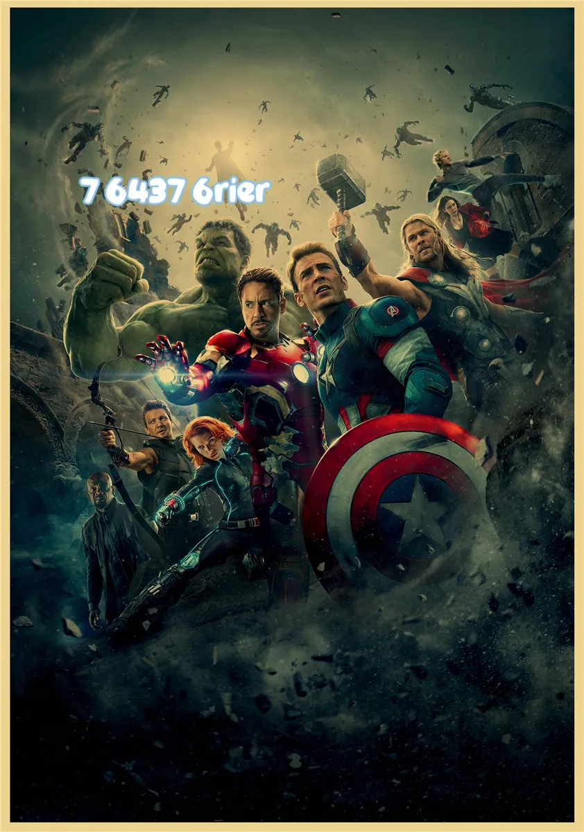Мстители: Age of Ultron Ретро Стиль супергероя из крафт-бумаги Бумага плакат Железный человек Капитан Америка "Халк", "Фильм стикер, стены, персонаж A222