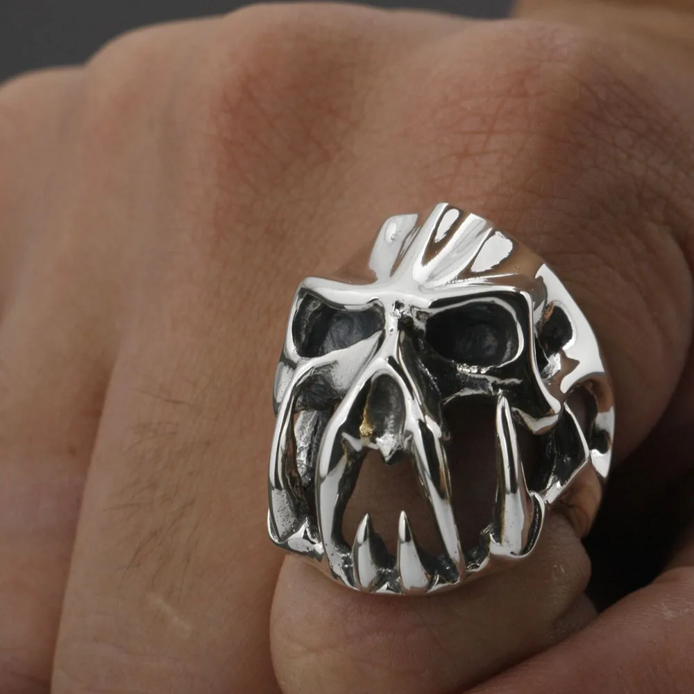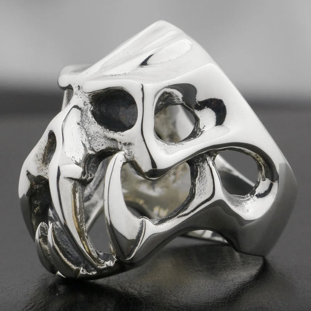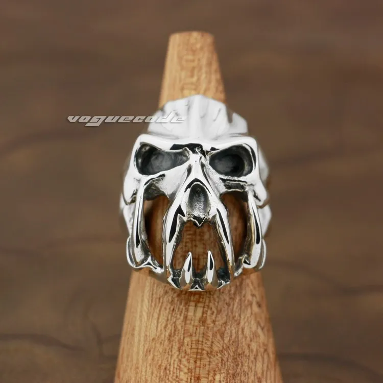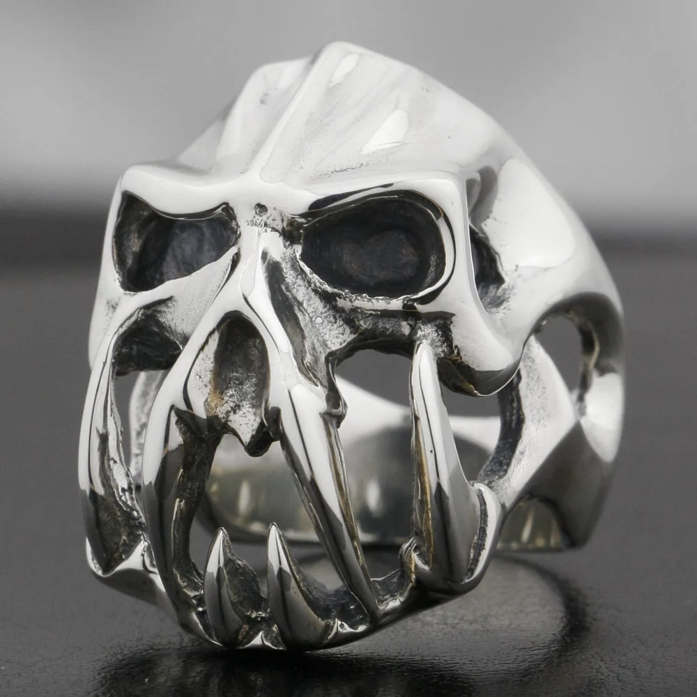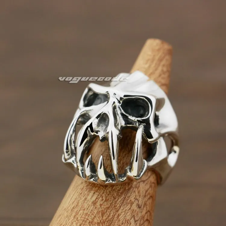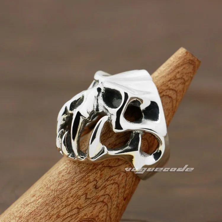 Кольцо мужское байкерское из серебра 925 пробы, с черепом, тигровым зубом, 8V004, размер США 7 15