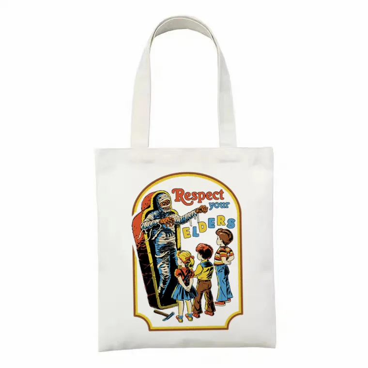 Сумка-тоут Мужская холщовая с принтом, Повседневная Складная Сумка через плечо для покупок, с изображением страшного зла, демона, смерти, сатанизма, американского ужаса и истории