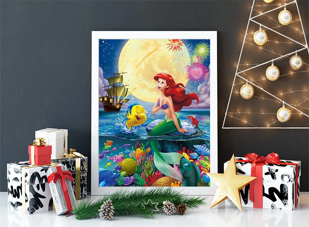 Алмазная живопись, мультфильм, Русалка, Принцесса Стразы, вышивка 5D, сделай сам, квадратная, круглая, фото, вышивка крестиком, мозаика, украшение для дома