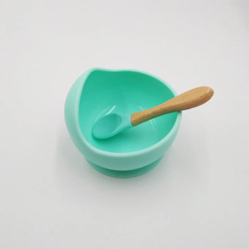 Силиконовая посуда для кормления ребенка, 1 комплект, нескользящая посуда, силиконовая миска без бисфенола А с водонепроницаемой ложкой, Детская тарелка, детская чаша