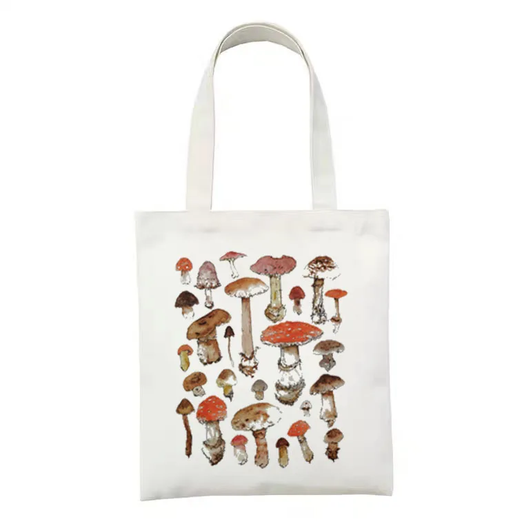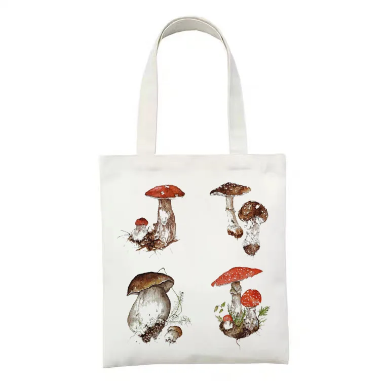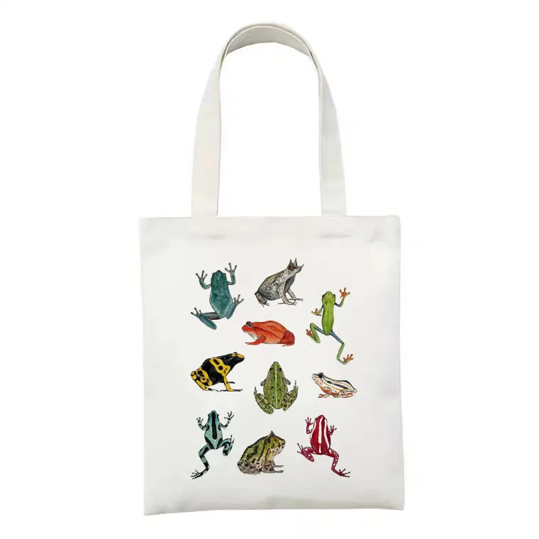 Женская сумка-тоут с лягушкой и грибом, повседневная Холщовая Сумка...