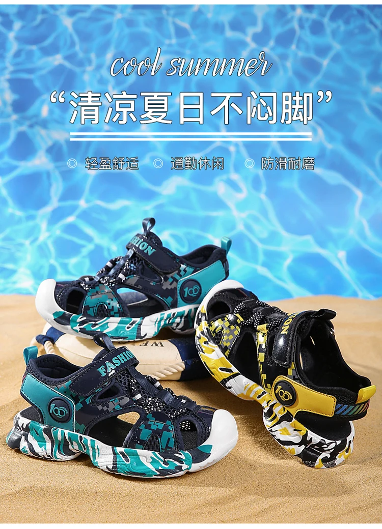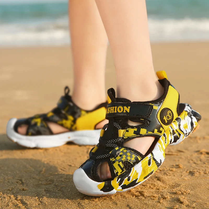 2021 летние детские уличные сандалии с закрытым носком, спортивная обувь для мальчиков, легкая пляжная обувь, детские школьные удобные сандалии