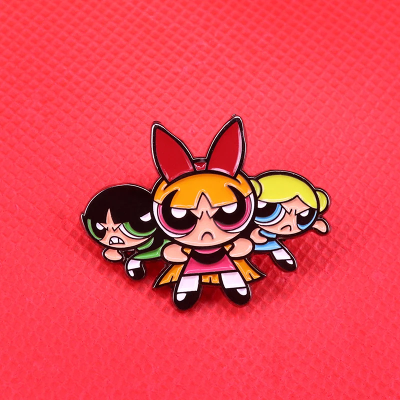 Супер девушки PowerpuffGirls эмалевые булавки цветущие пузырьки и б...