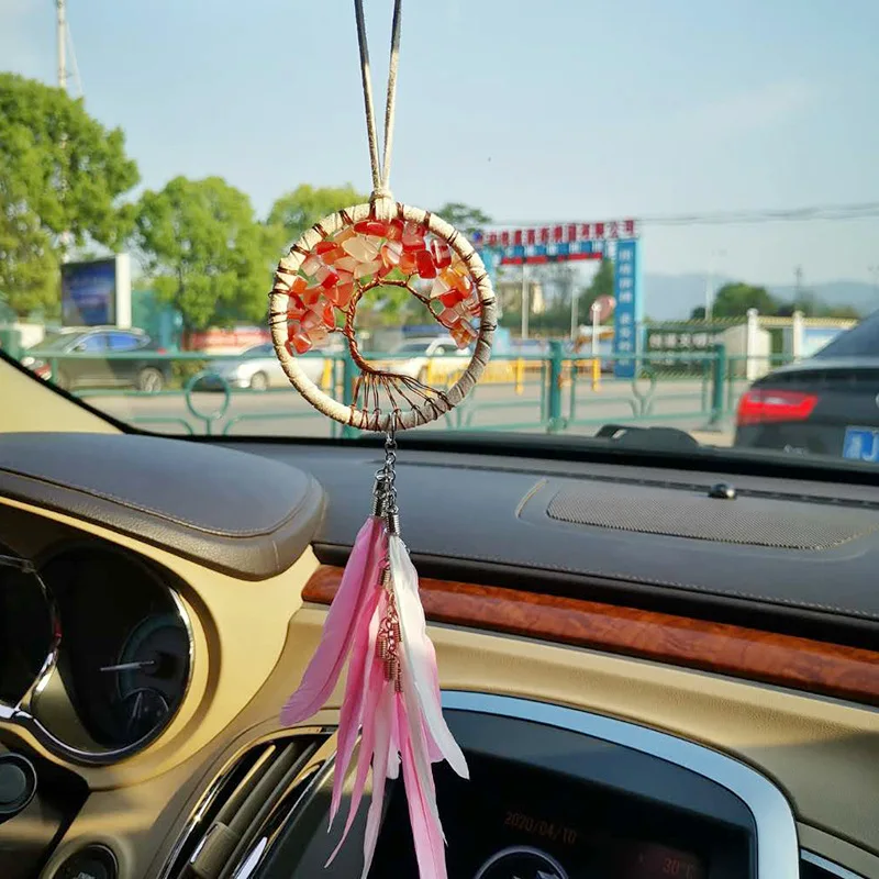 Зеленое и розовое дерево жизни украшение автомобиля междоусобное украшение Ловец снов Декор перьев