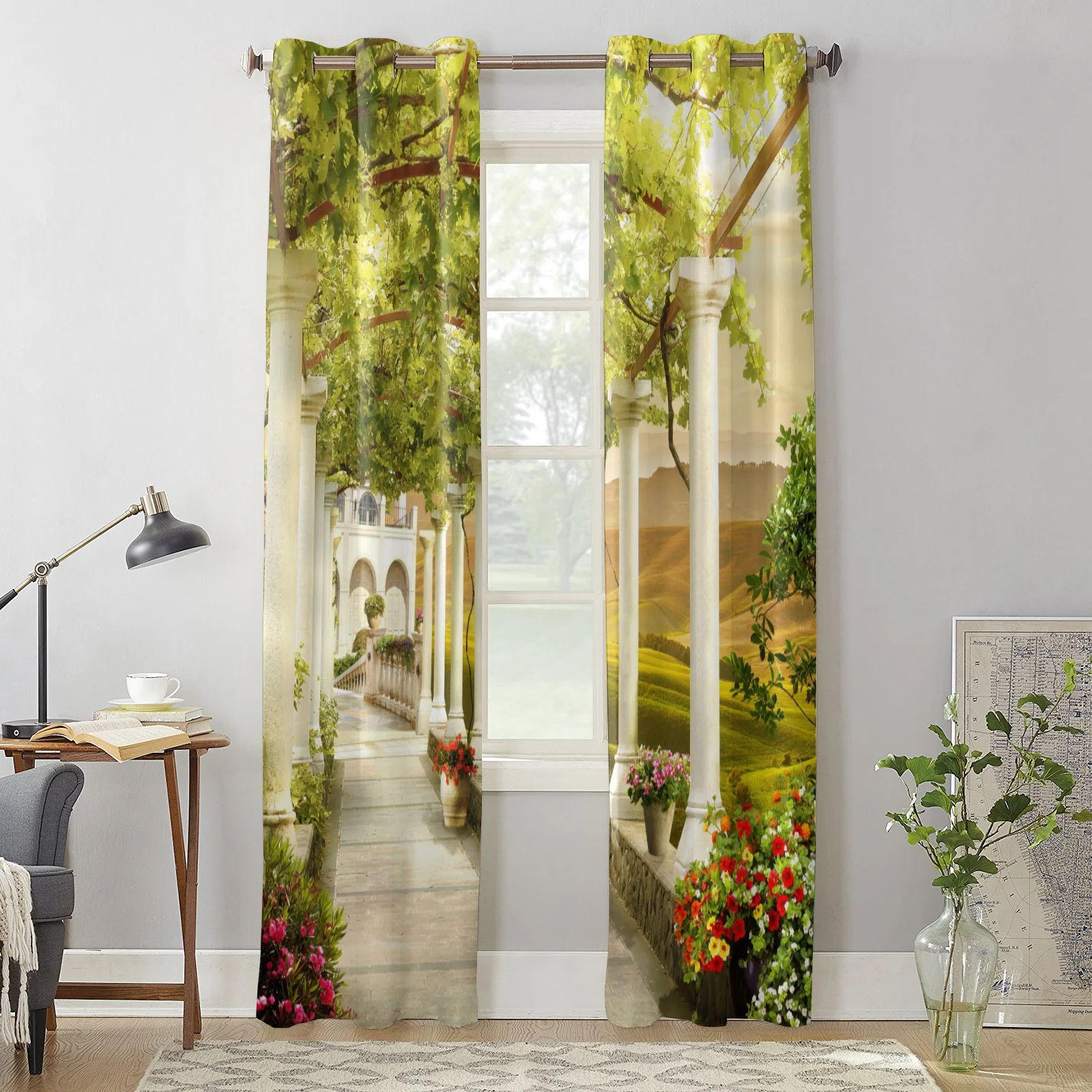 Изысканные занавески s, коридор, цветы, здание, подходят для гостиной, спальни, занавески, уличная беседка, Декор, балдахины, занавески s