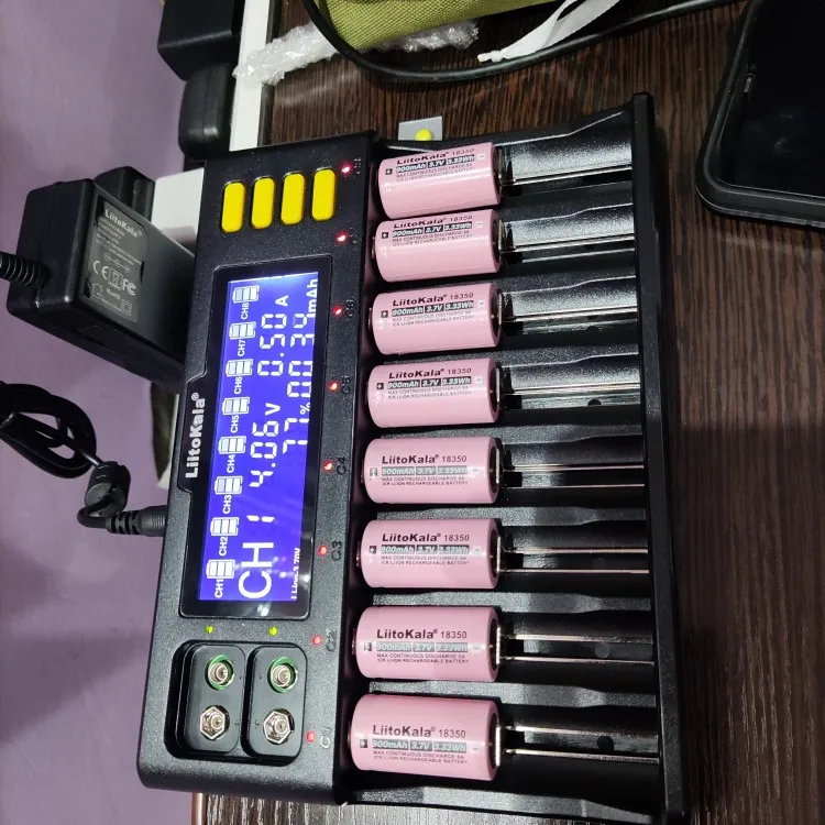 Входное напряжение: 12 В/4 а постоянного токаВыход напряжение: DC 4,2 V/1,48 V DC/DC 3,65 V / DC 4,35 V / 9VВыходной токТок зарядки литиевой батареи:2000ма * 4 / (300мА/500мА/700мА/1000мА) * 8NiMH ток зарядки аккумулятора: 500 мА * 8Ток зарядки аккумулятора 9 В: 85 мА * 2Характеристики аккумуляторной батареи: 26650,21700,18650,18350, 20650,14500, AA, AAA, C,SC 9V и т. Д.Метод прерывания: Интеллектуальный контроль напряженияРазмеры: 195 мм (длина) * 142 мм (ширина) * 35 мм (высота).