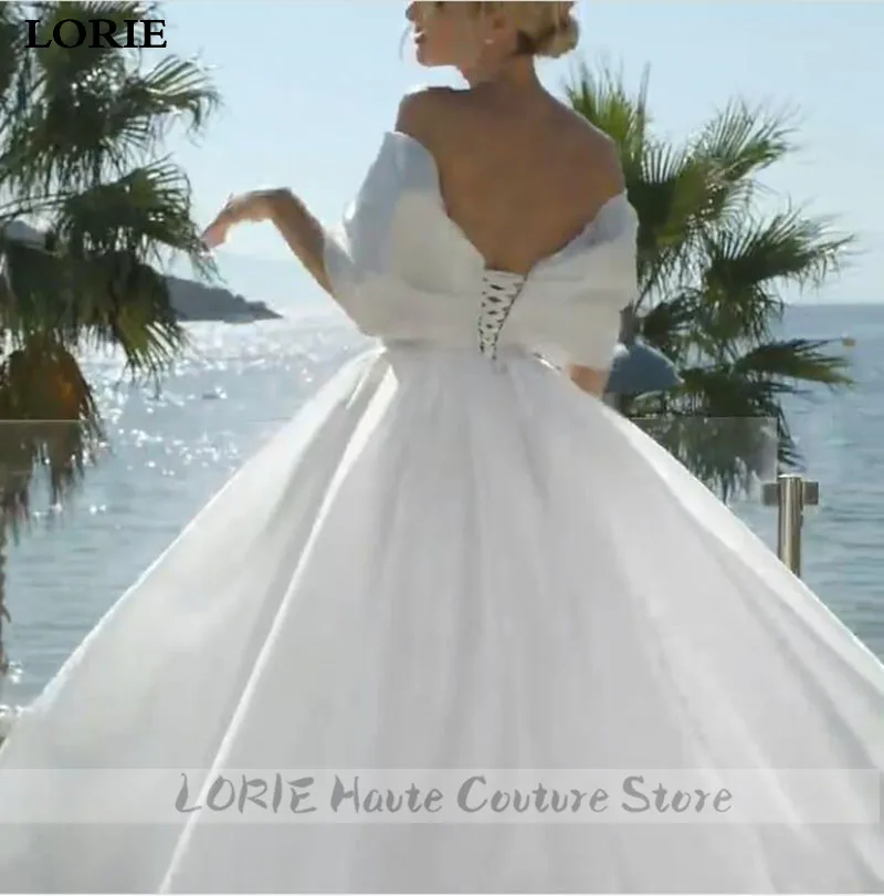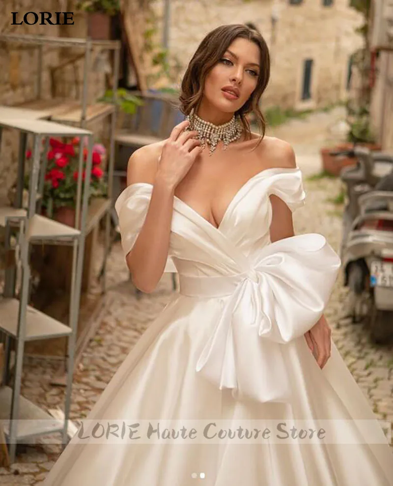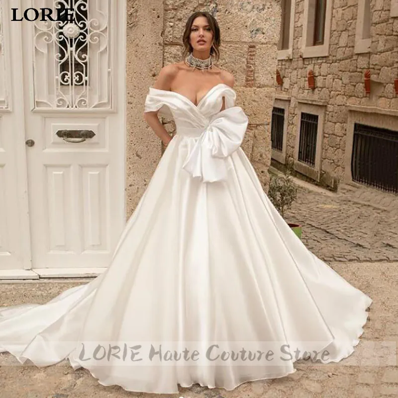LORIE Принцесса Атласное Свадебное Платье Aline свадебные платья с открытыми плечами с большим бантом буффами Длинные свадебные платья на шнуровке сзади